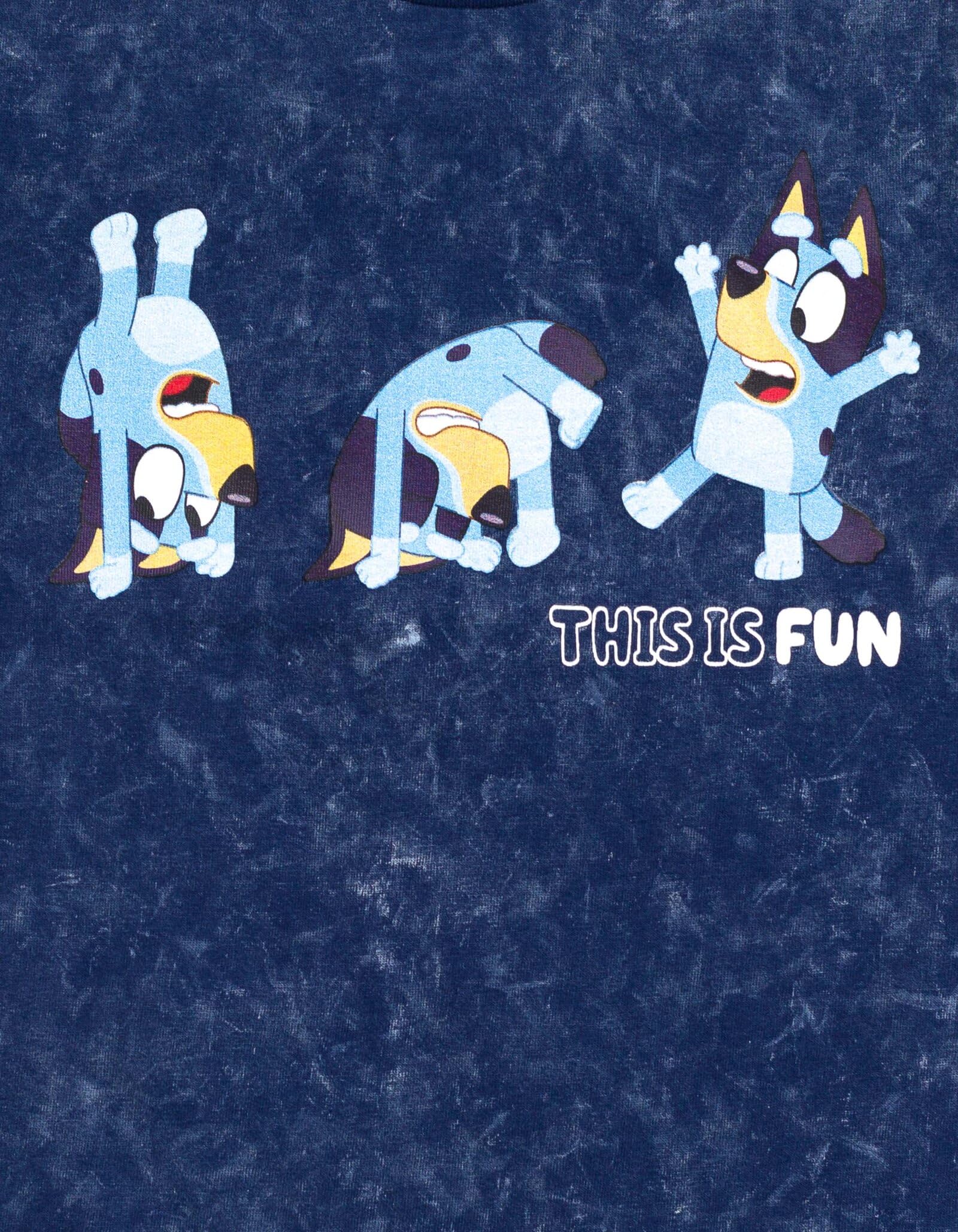Description Your kid is ready to play in this adorable Bluey outfit. This fashionable short sleeve shirt and shorts set features a comfy vintage wash fabric and vibrant artwork of Bluey and her sister Bingo that your kid will love to wear. Soft and stylish, this Bluey tee and shorts set is made of 100% cotton so your child stays comfortable and adventure-ready all day long. Due to the nature of the special wash on this garment, every piece will have variations of color and appearance.