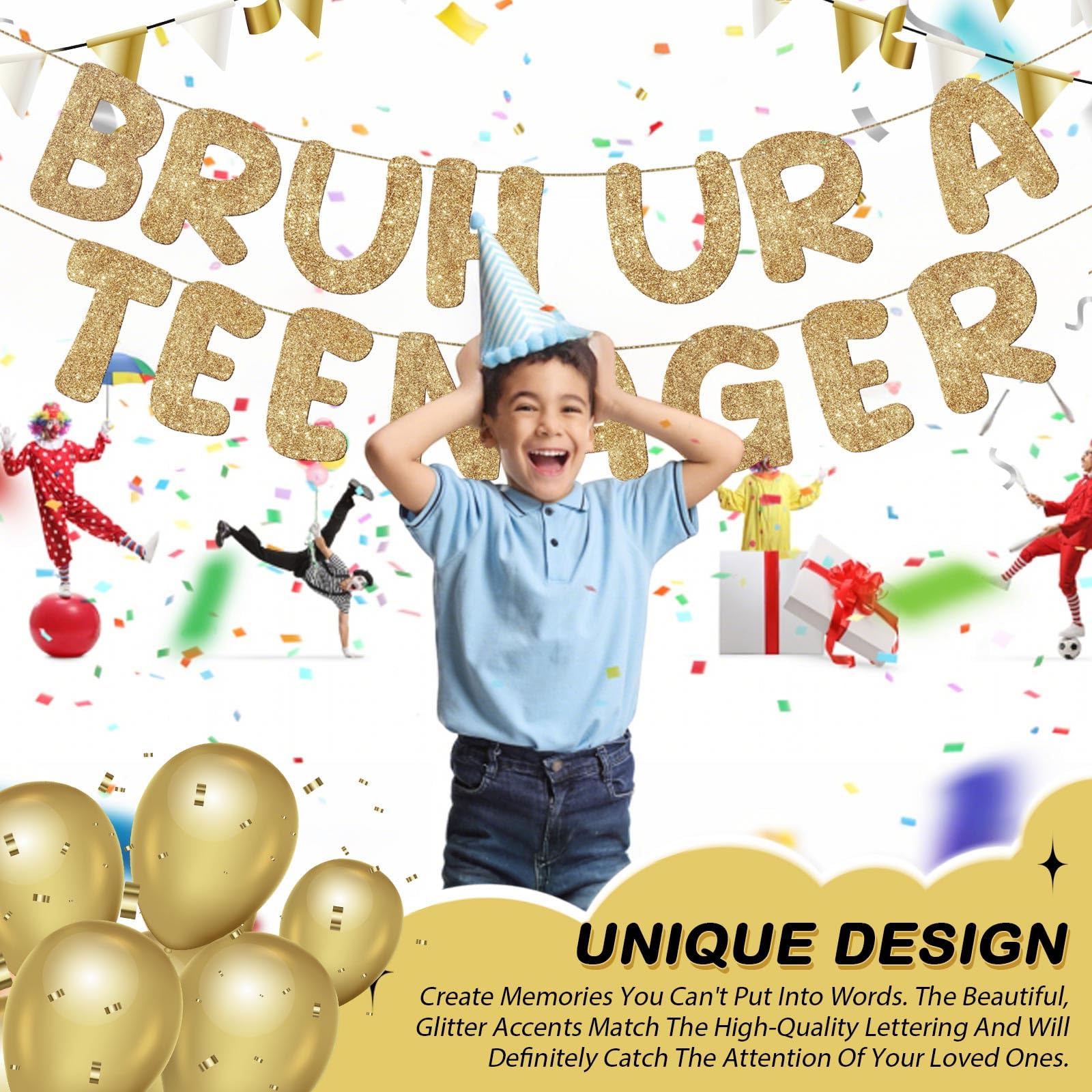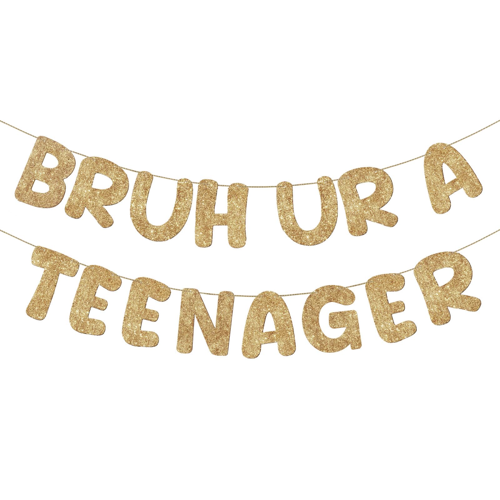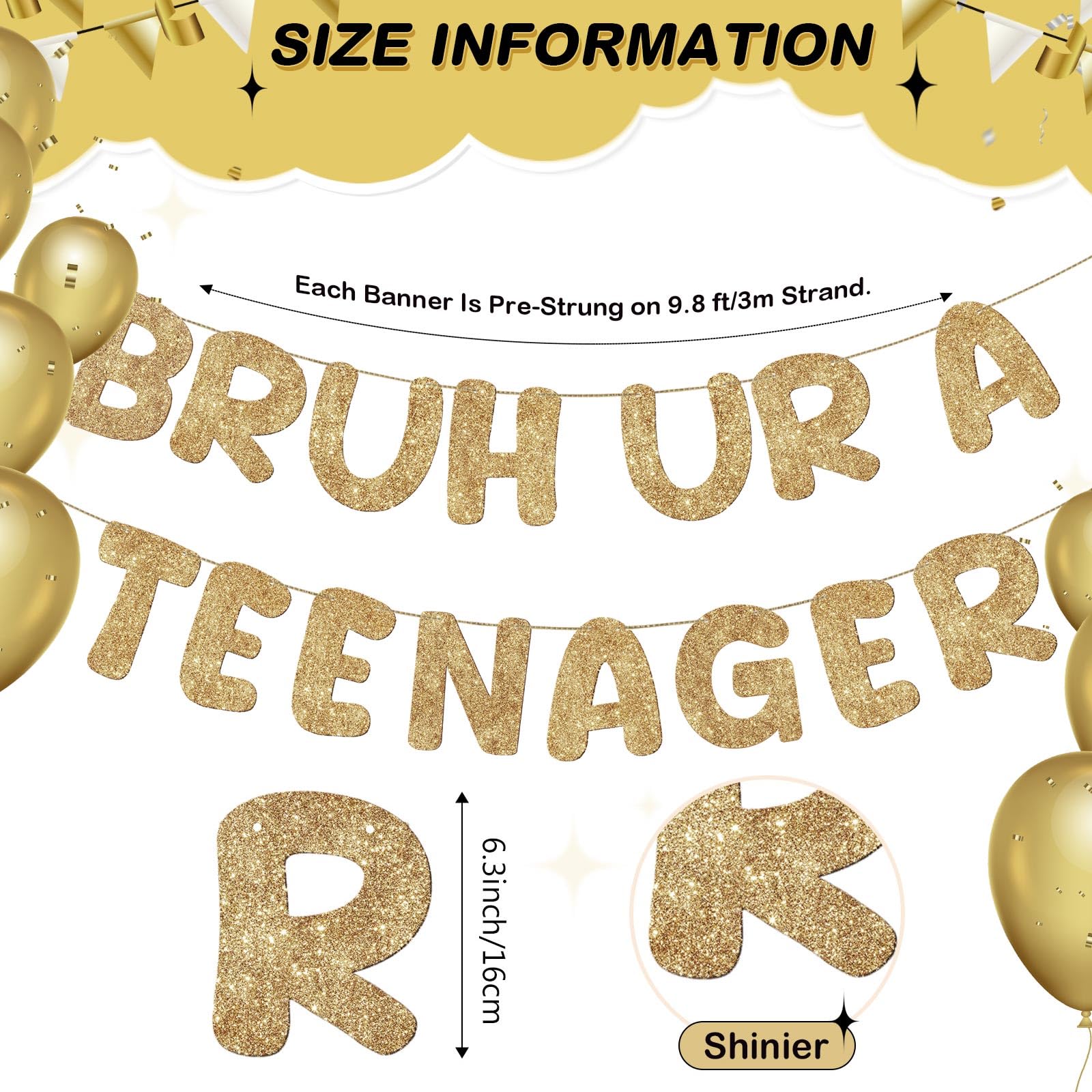 Funny and Memorable: the Bruh Ur a Teenager banner lettering on the party decorations not only catches your eye but also gives a funny vibe. It serves as a focal decoration or photo prop, making your party memorable and full of laughter and fun and the event joyous