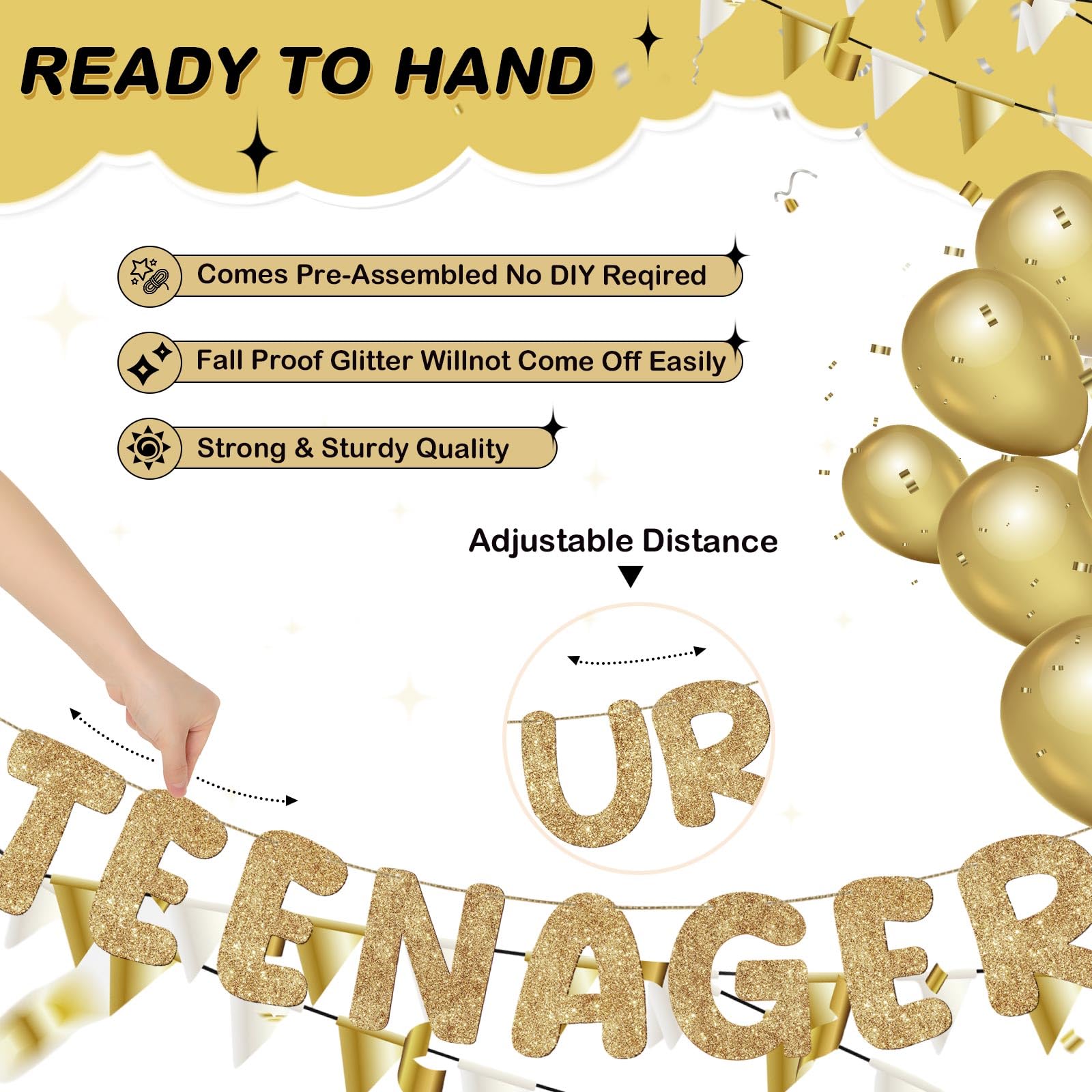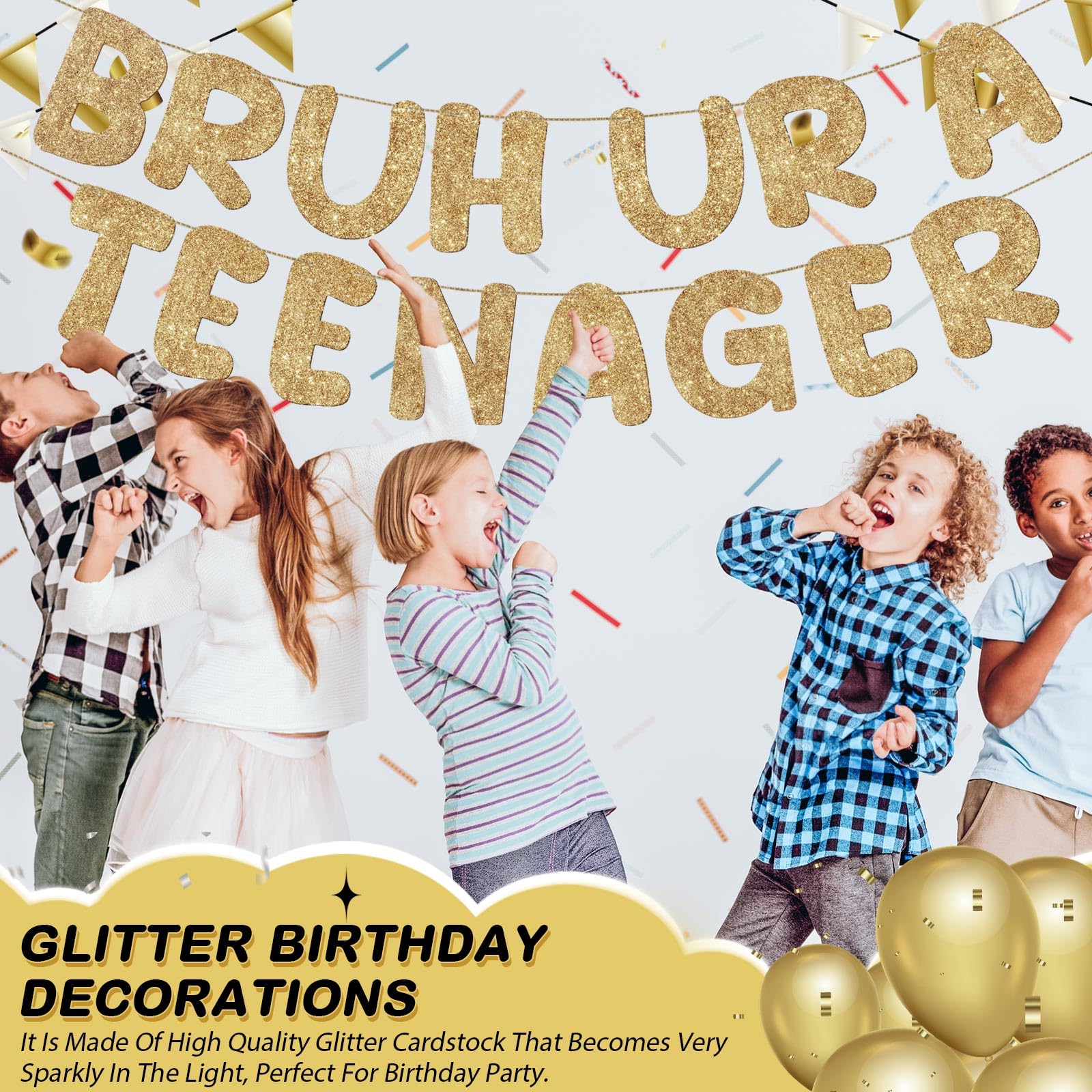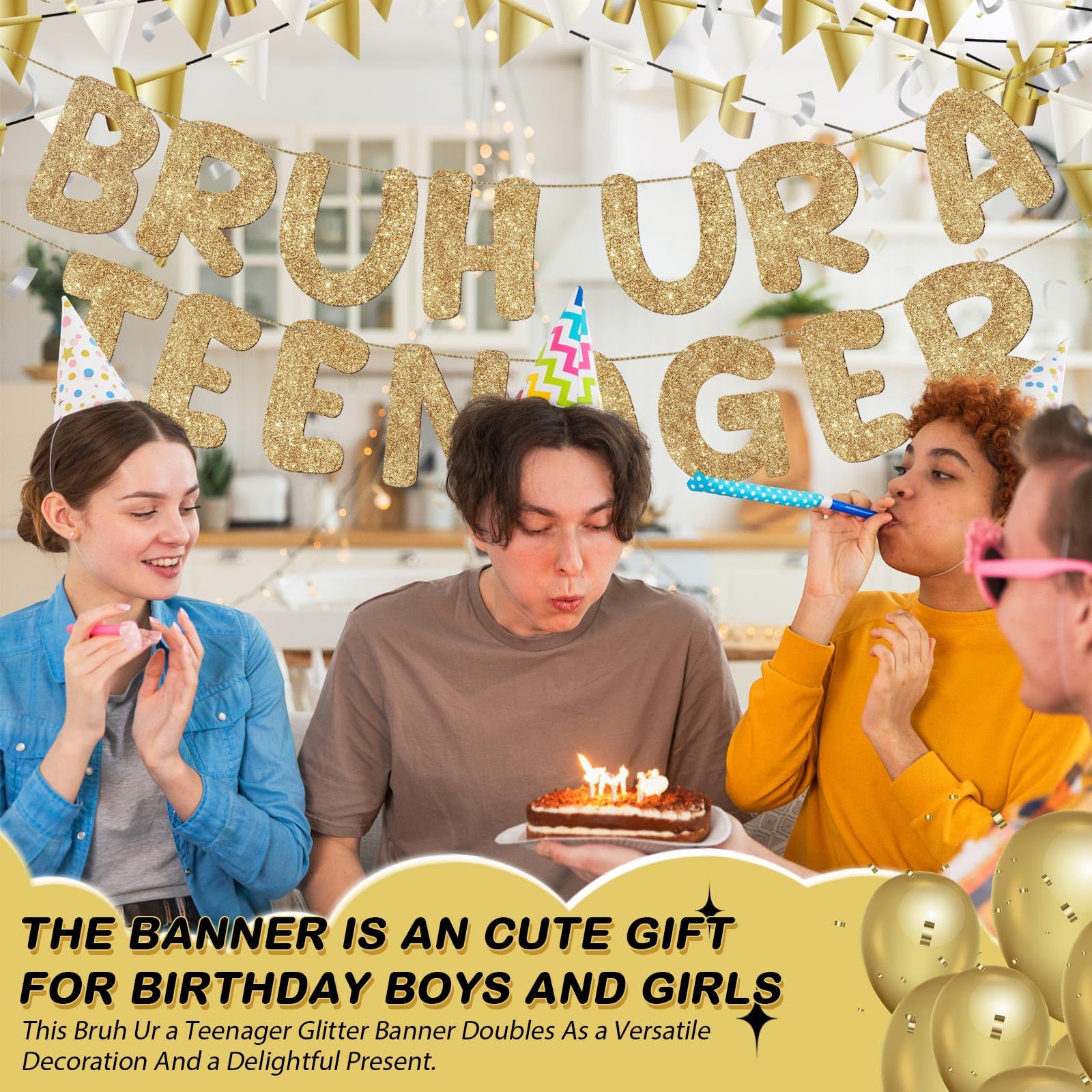 Ready to Display: the package includes 1 set of 13th Birthday glitter banner; With shimmering letters spelling out [Bruh Ur a Teenager], this funny happy 13th birthday banner comes pre strung, is easy to set up, and is visually appealing
