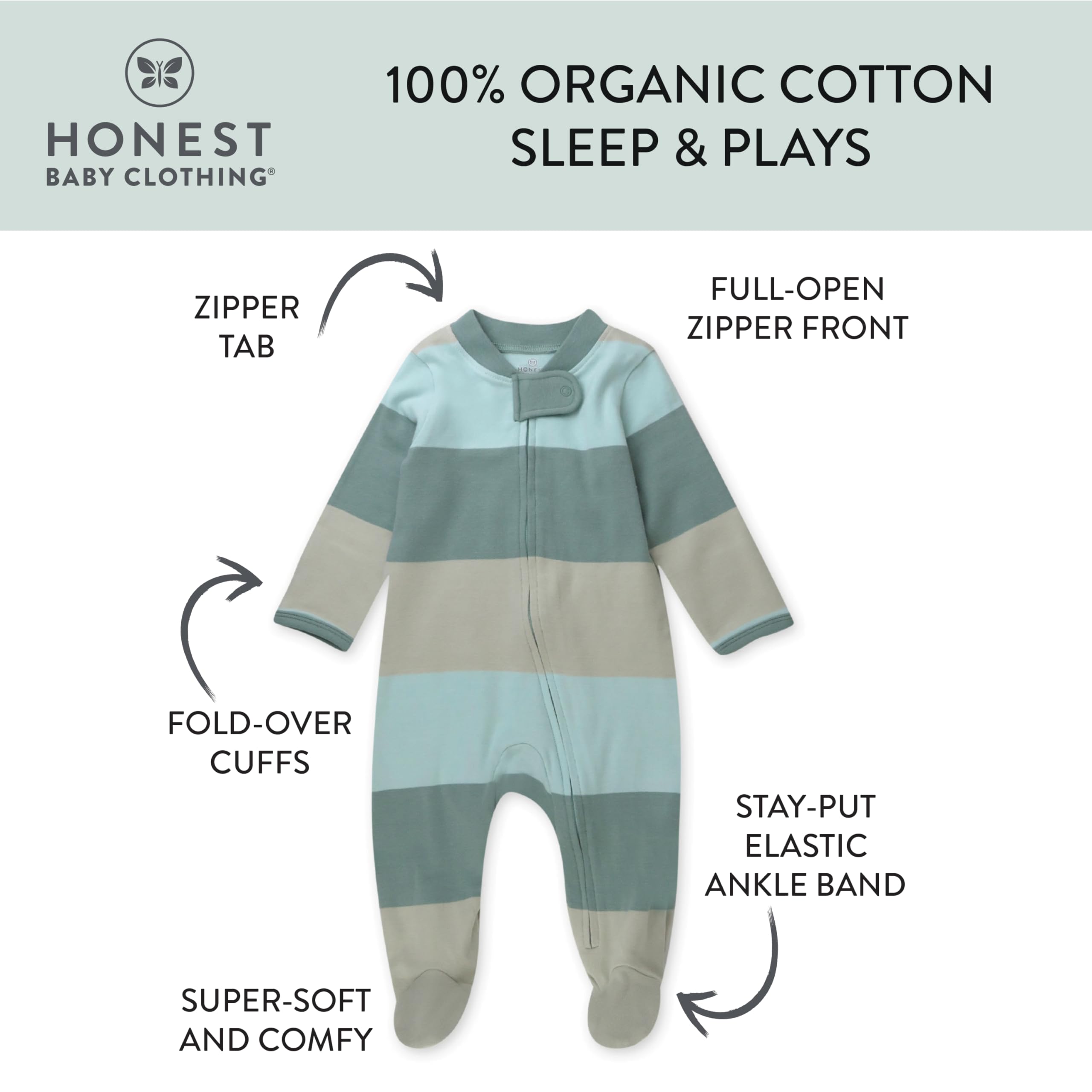 Description Our sleep & play lives up to its name! This adorable footed sleeper keeps up with baby all day and all night. Friendly features include a zipper front with a tab to protect little chins and fold-over cuffs on the smaller sizes. The full-open zipper makes it easy for those late night diaper changes. 100% soft organic cotton and playful prints make this the perfect one-piece for sleeping, playing, and everything that happens in between. You will want every one of these adorable prints! A registry must-have, this baby pajama makes the best gift for new moms and dads.