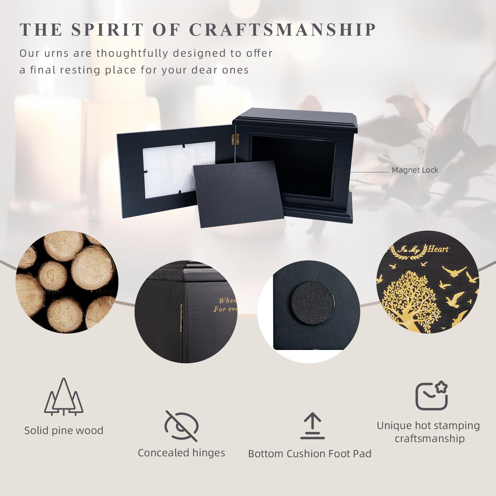 Product Upgrade: The urn photo cover hinge is upgraded to a hidden hinge for a more beautiful appearance; wooden urns for human ashes adult Adopts no screws design, more secure and convenient