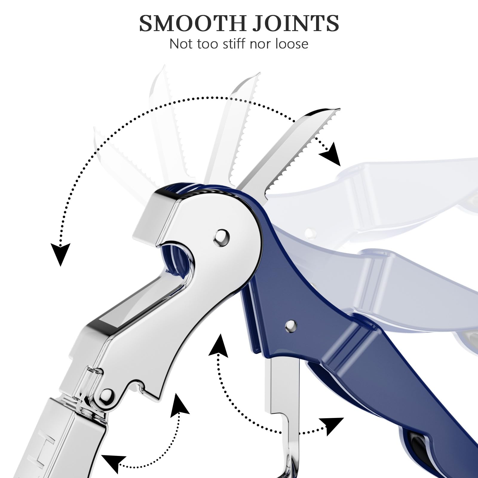 MULTITOOL WINE OPENER: Made from 420 stainless steel and featuring a durable zinc alloy handle. It includes a classical double-hinged design that helps you pull the cork from the bottle with no effort. Featuring a built-in foil cutter and bottle cap opener, everything you need to open a bottle of wine or beer is conveniently and easily available to you in one tool