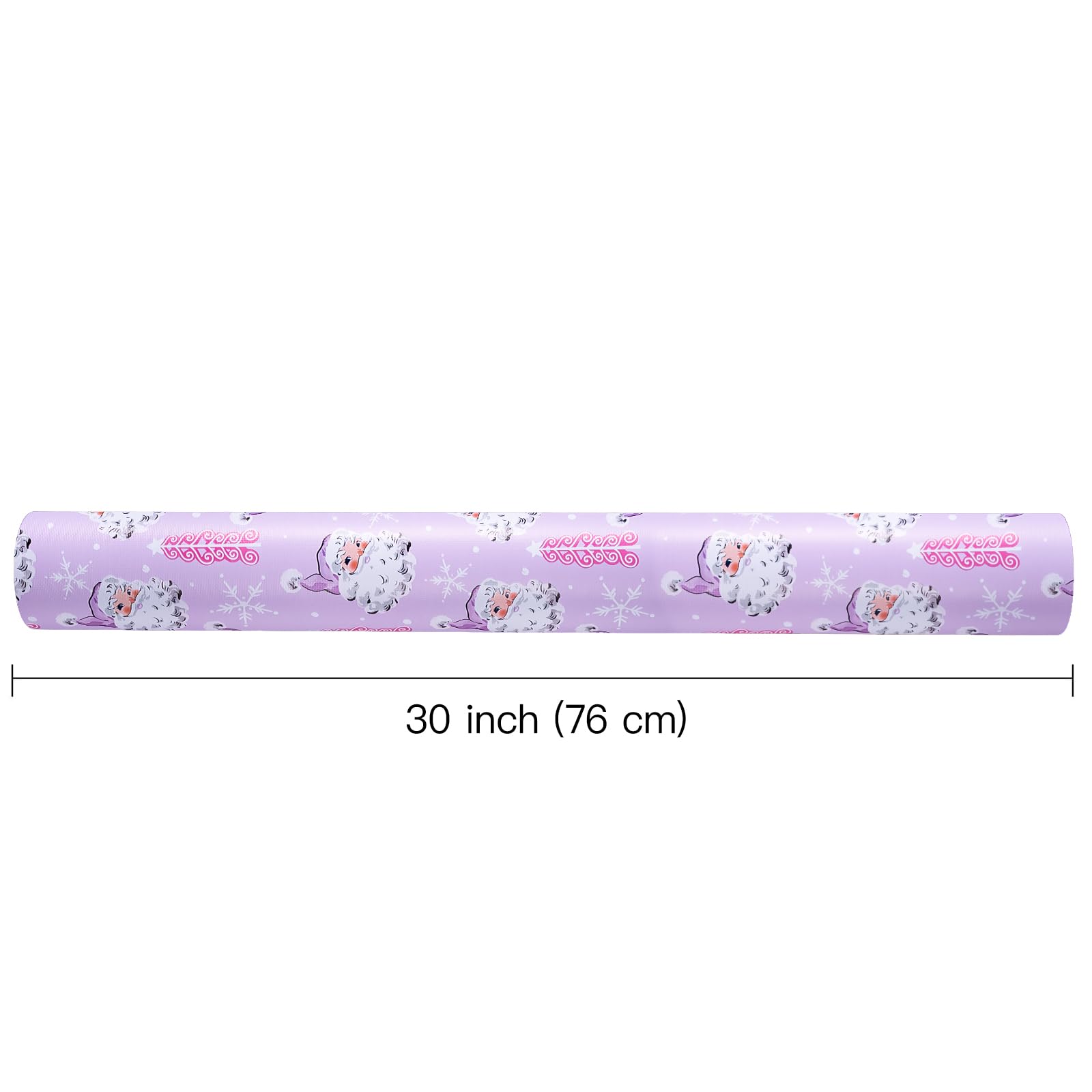 Perfect Size: Jumbo roll measures 30 inches wide by 100 feet. Providing you with a total of 245.4 square feet of paper, sufficient to cover a wide variety of gift sizes. Reversible Design: Purple santa claus with embossed printed on one side, purple and white snowflake printed on the reverse. Two different designs make unique and varied gift presentations easy. Premium Quality: Created with high-quality paper materials, thick and not easily tear or rip. Item came with shrink film to prevent wrapping paper from scratches and reduce dust. Use All Winter: Whether it's the joyous celebration of Christmas or the holiday season filled with family gatherings and gift - giving traditions, it is an outstanding choice. It is also great for decorating the Christmas tree. Wrap Your Love for Christmas: You can wrap your love with our special Christmas wrapping paper, adding a splash of color to all of your gifts. Your family, children, and friends will feel your sincere Christmas wishes this holiday season. Quality Customer Service: Any question about products or orders, please feel free to contact the customer service, we will try our best to solve the problem.