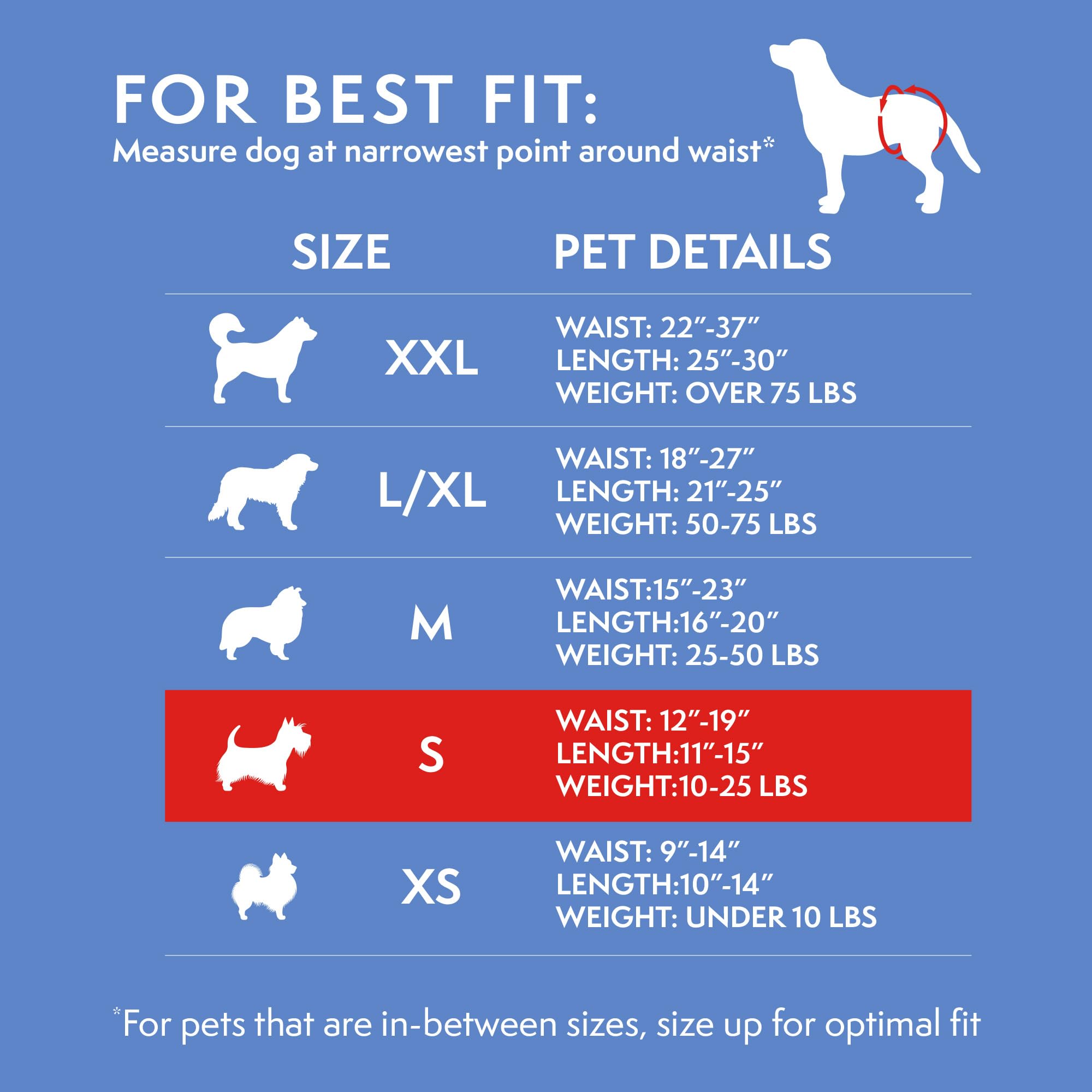 SMALL DOG DIAPERS: Our Dog Diapers featuring adjustable fit sizes for female dogs with a 12–19-inch waist; These female dog diapers feature a stretchable fabric that fits snugly around your pet, so they are a perfect fit.