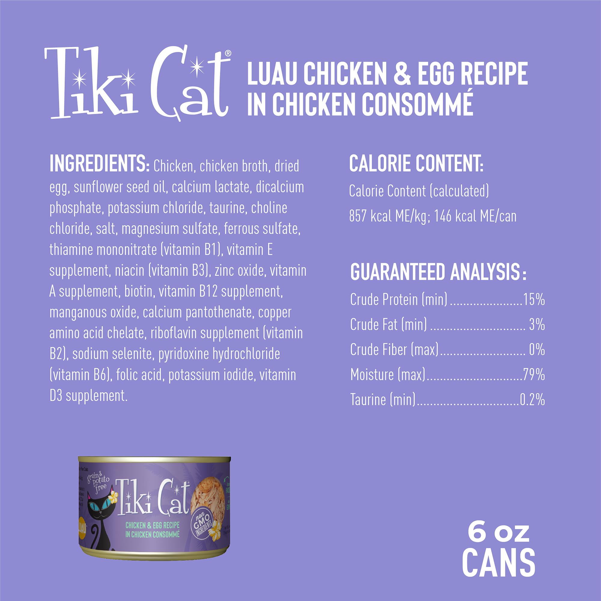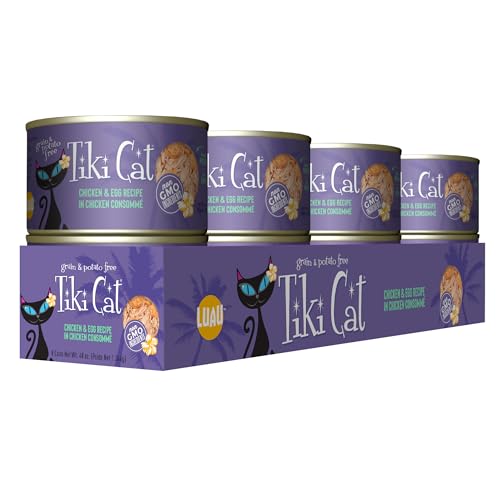 Tiki Cat Luau Wet Cat Food features succulent combinations of tender shredded chicken and flaked fish, like wild salmon or ahi tuna, in a savory broth.