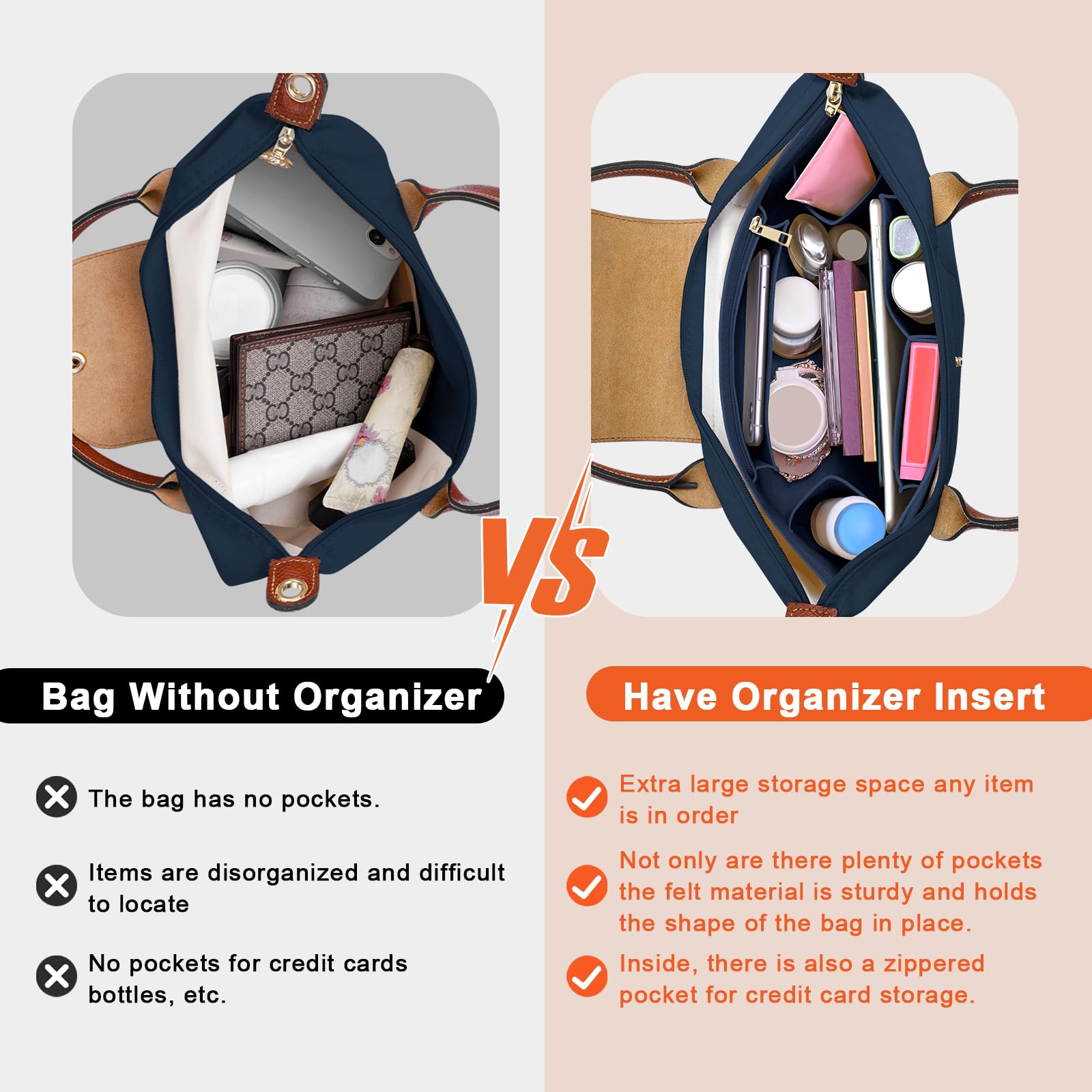 Organizer Same Shape as the Bag: An seperate Zipper Insert Which Helps Keep Your Valuable and Privacy Items Stored Well, And All Your Things Could Be Easy To Find. The Whole Tote Organizer is Also Sturdy Enough to Help Keep Your Bag In Proper Shape,IMPORTANT: This tote organizer is designed for Longchamp bags and does not include the bag, if you have a similar tote, please double check the size to ensure compatibility.
