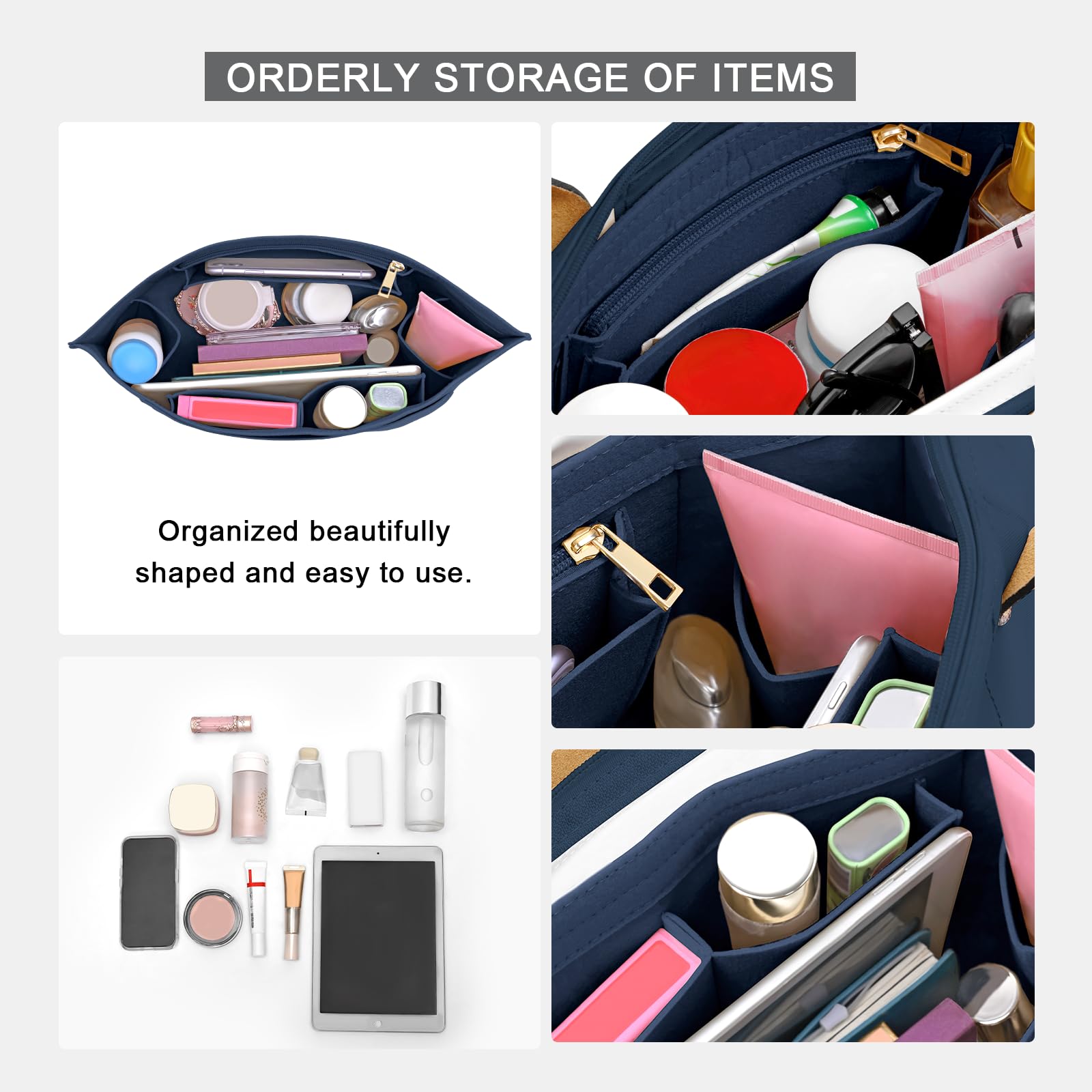 HIGH QUALITY FELT: The Organizer is made of high quality Thick felt material, Sturdy ,Soft and pliable, Lightweight. which can better protect the inside of of your tote bag.