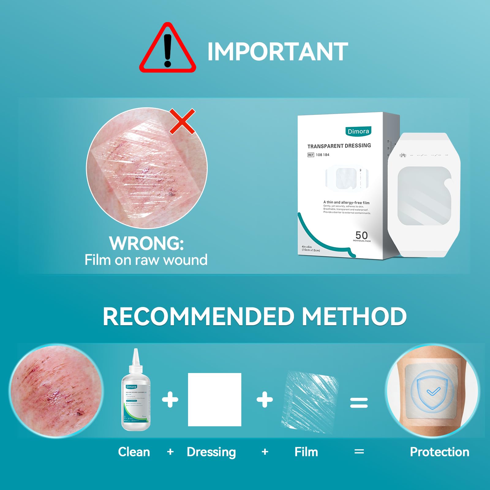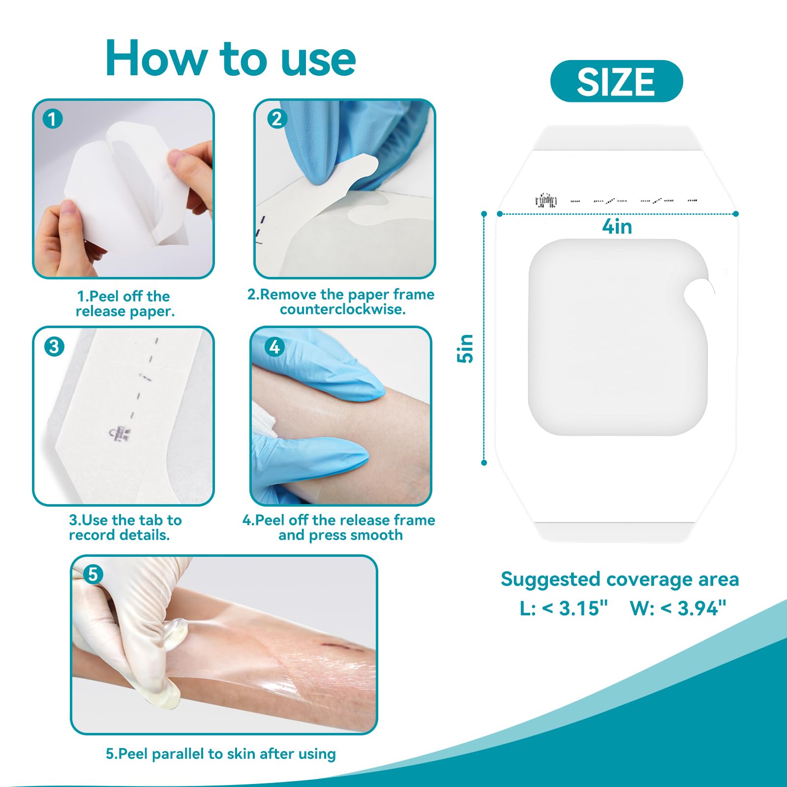 Versatile Application: Not only as a medical fixation IV and non-adhesive dressing; but also as baby's belly button protection and tattoo aftercare Notice:Don't apply tranparent film dressing directly on open wound or wound with too much exduate, use with gauze or non-woven cloth, and peel off the dressing in a correct way to avoid tearing the wound again. If you encounter any problems while using, please contact customer service promptly