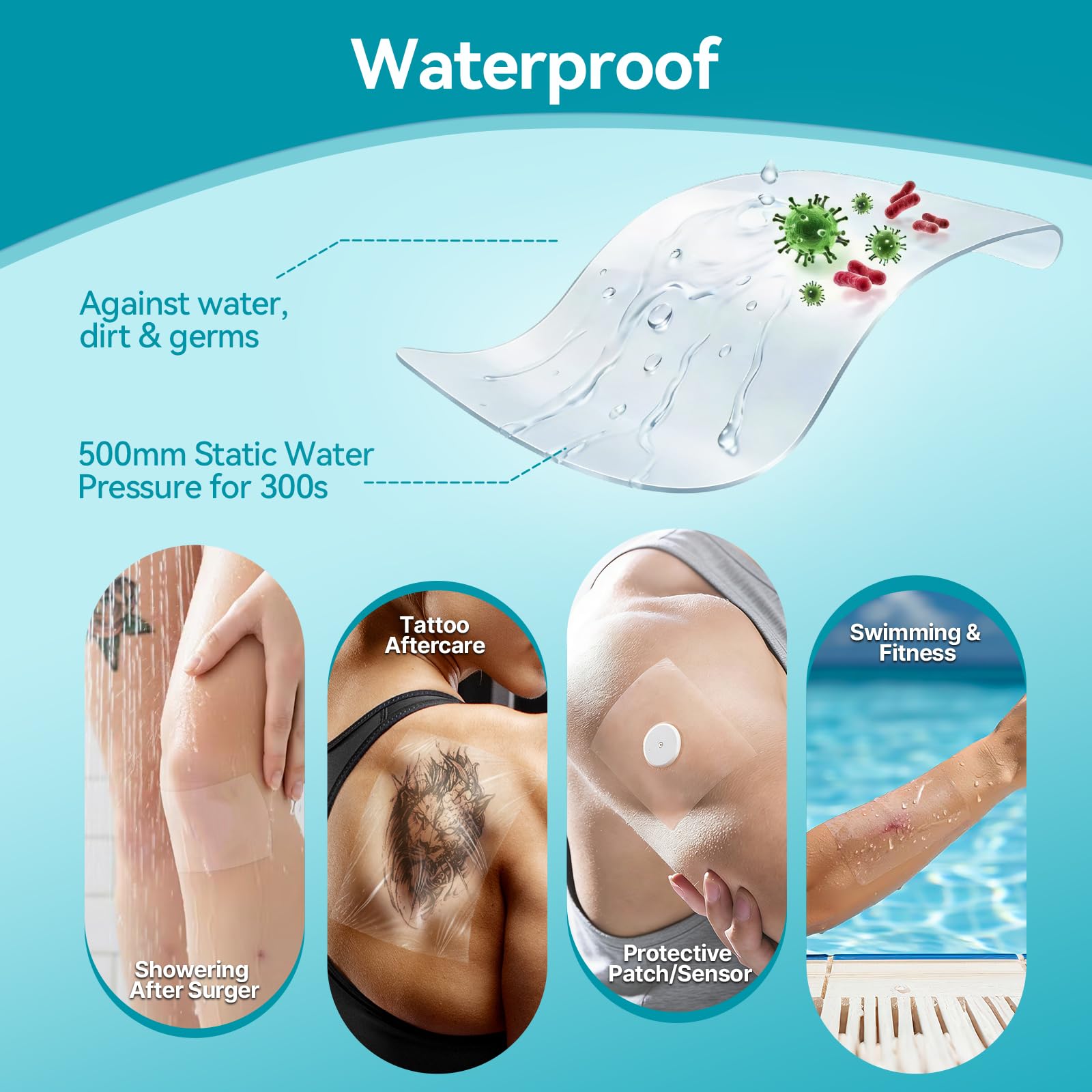 Waterproof: Excellent waterproof performance is impermeable to liquids brings safe care to wounds, you can showering or swimming as usual