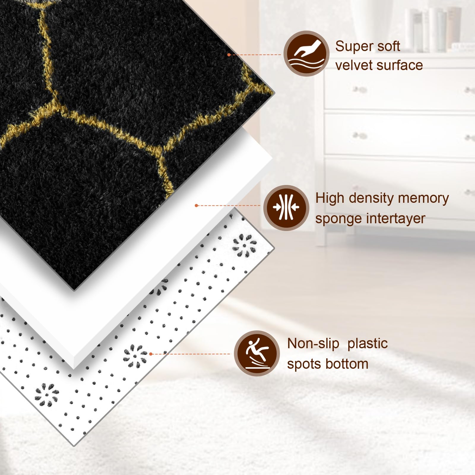 Premium material: Different comfort experience - Our fluffy soft rug is made of synthetic microfiber, which makes your bedroom rug is more comfy and soft. There are 4 practical sizes of the washable fluffy area rugs you can choose from