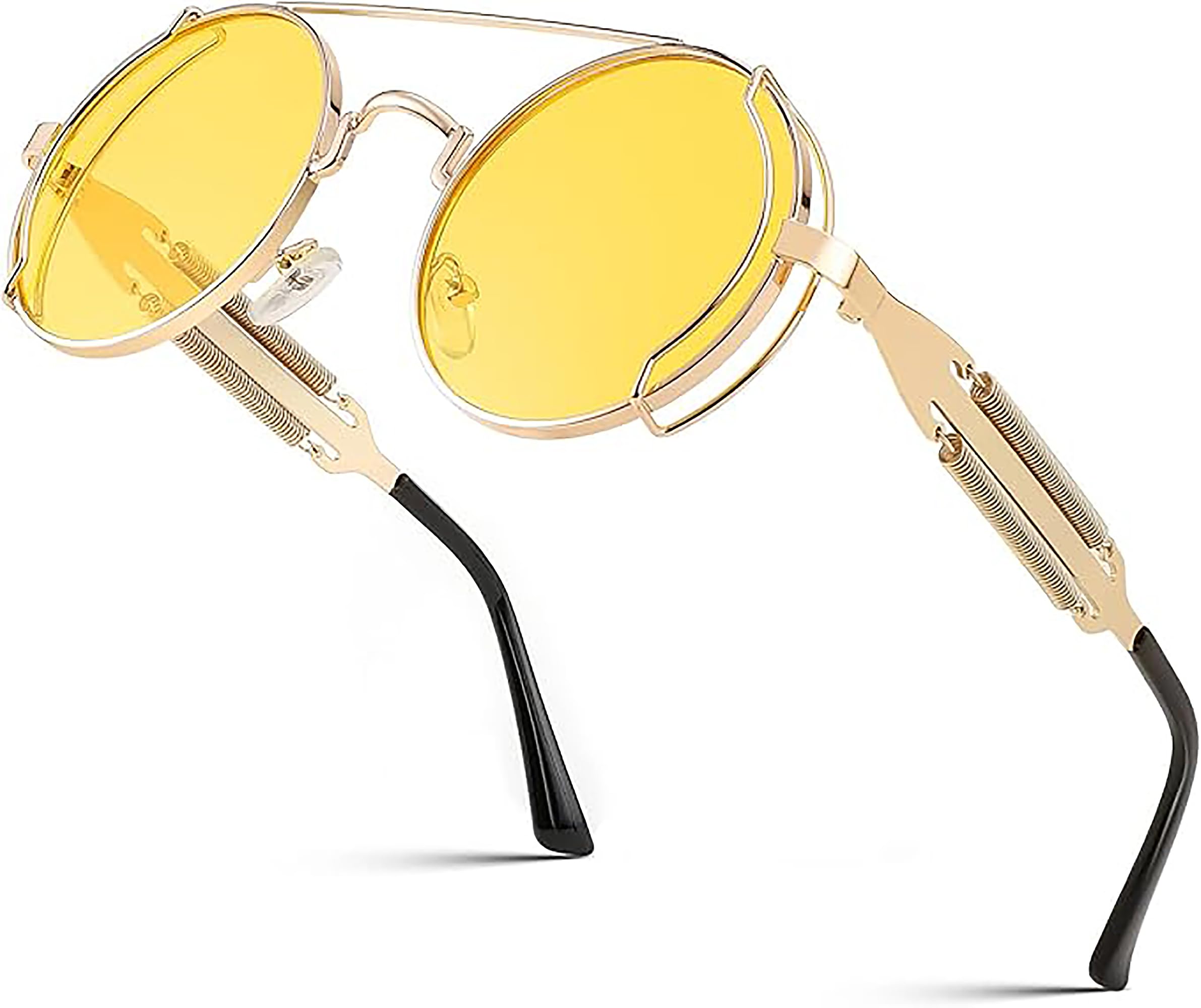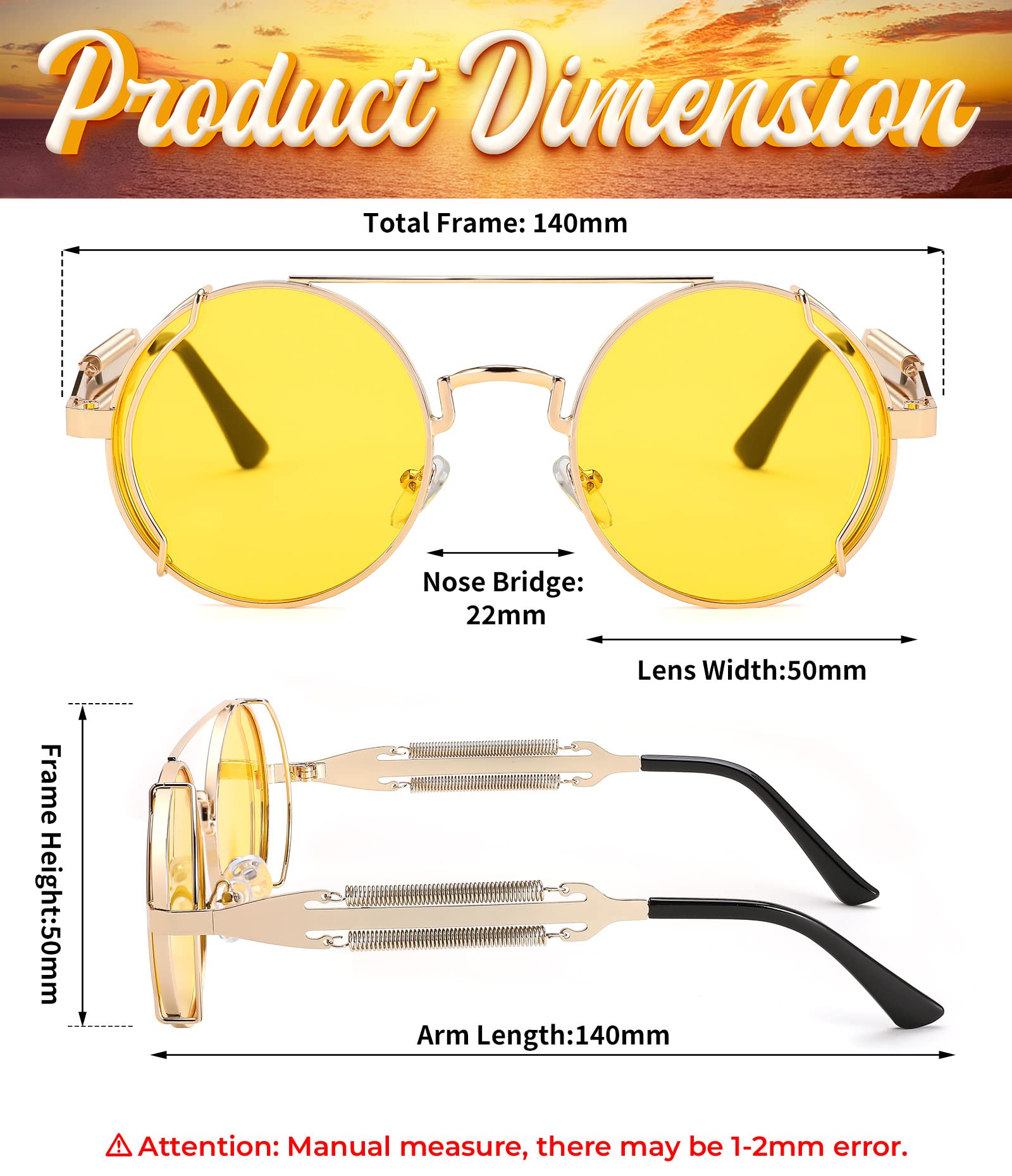 FEISEDY Round Aviator Steampunk Sunglasses Design: The retro steampunk sunglasses are designed with a round metal frame, classic and elegant. With double bridge design, enhances the luxurious and textured feeling of the glasses. With a creative metal frame, retro, and rock.