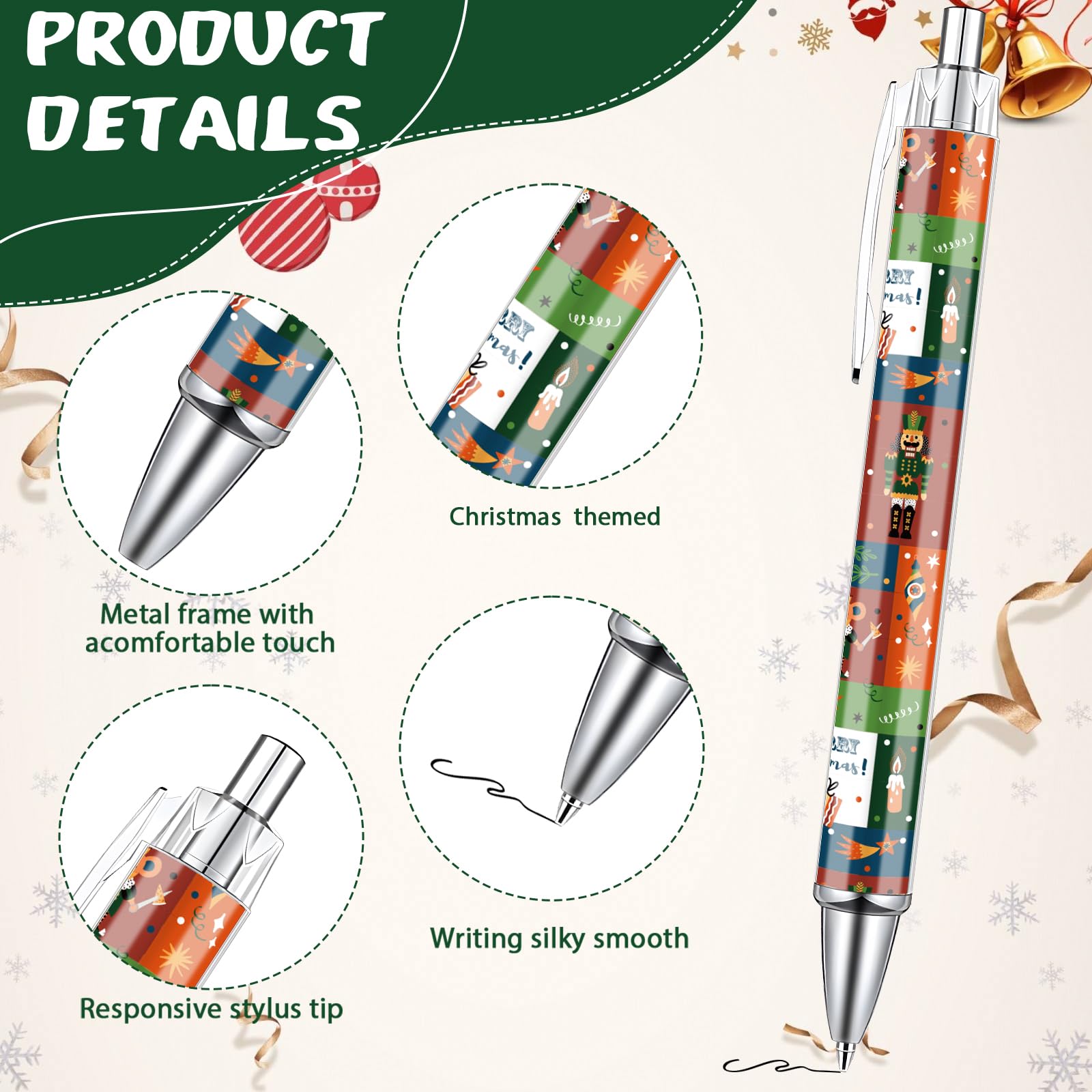【Christmas Themed Design】This ballpoint pens gifts adopts rich christmas elements, including Nutcracker christmas tree and other classic patterns, creating a warm and natural atmosphere. They are not only practical writing tools, but also beautiful desktop decorations, adding a seasonal charm to your office environment