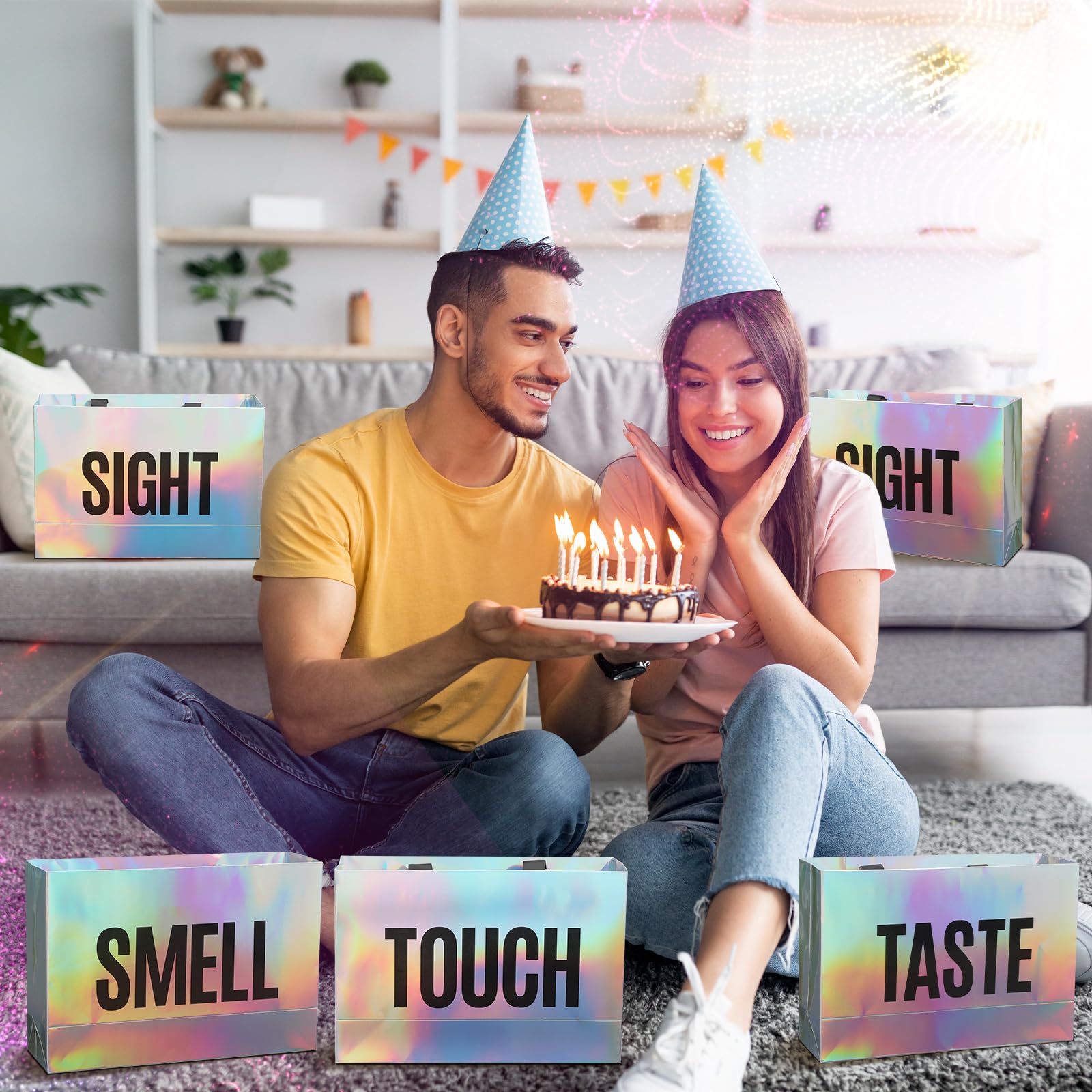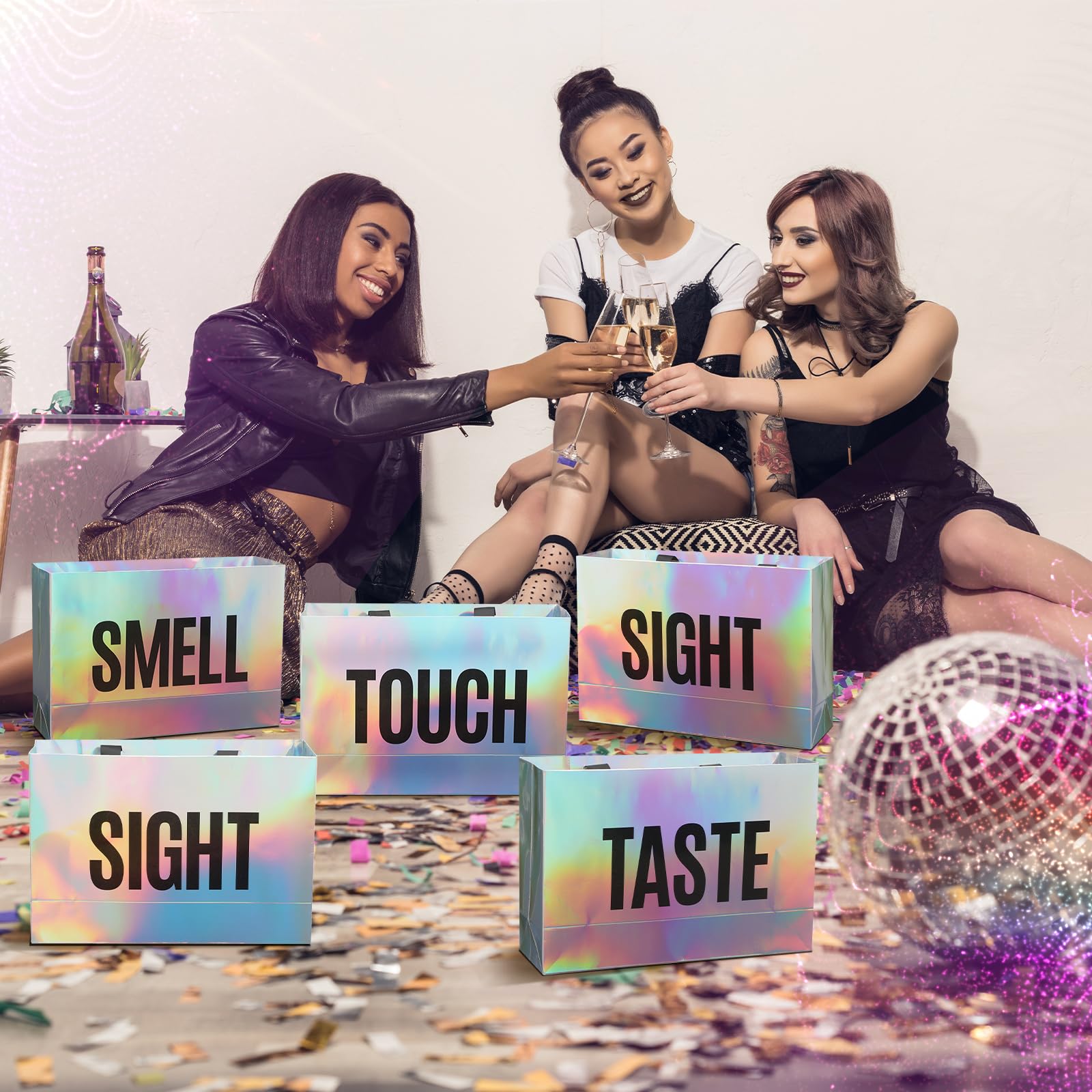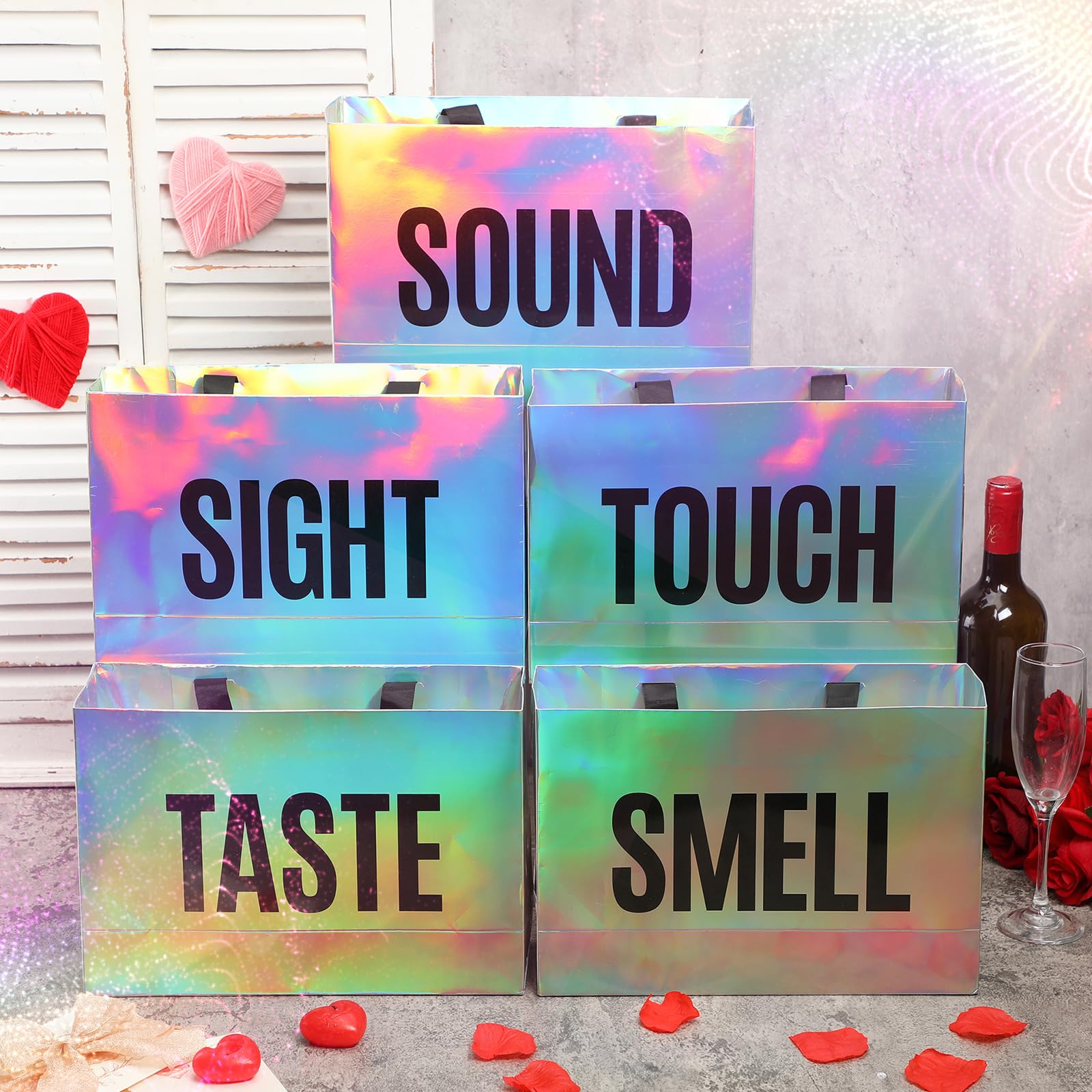 Graceful: the sight smell touch taste sound gift bags are designed with a striking color to add elegance and sophistication to your gifts; Whether it's birthday, Valentine's Day, or an anniversary, these gift bags give an upscale feel to your presents