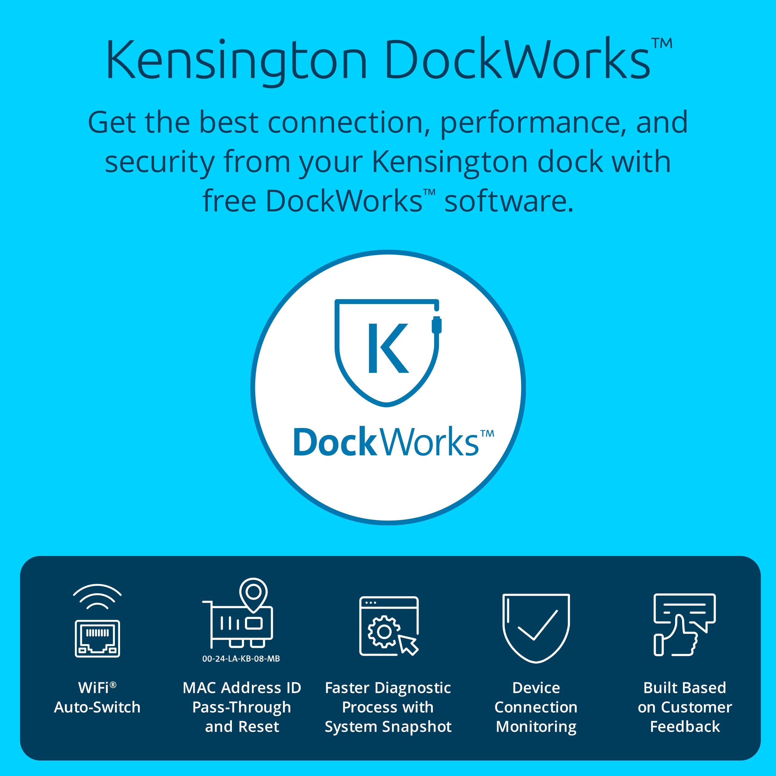 Free DockWorks software delivers the best connection, performance, and security from your Kensington dock. Enjoy peace of mind knowing your covered by Kensington with a professional warranty