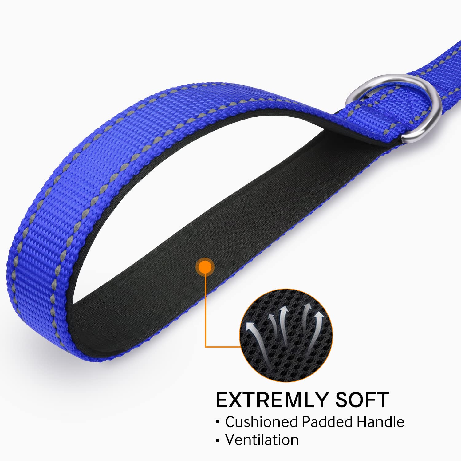 DOUBLE-SIDED REFLECTIVE: Upgraded double-sided reflective leash features reflective stitching on both sides to improve its visibility and would be reflective when lights shine on it at night. Can keep your doggie safe during evening walks or runs