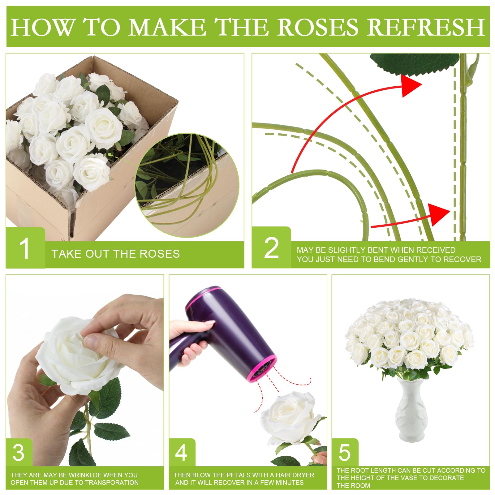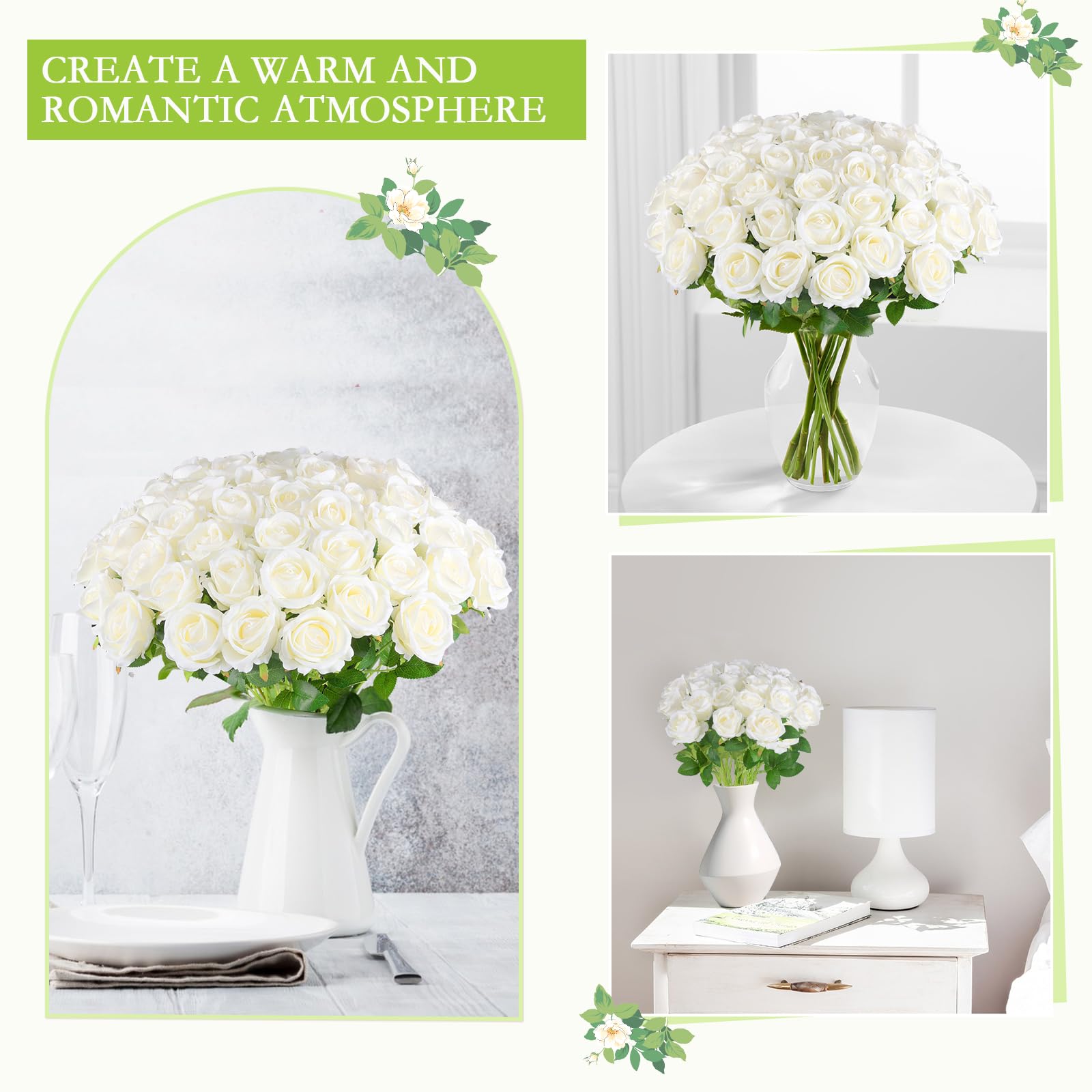 Bulk Quantity: You will receive 50 pieces of white artificial Roses. It is enough to meet your floral arrangement needs, such as wedding decoration, party decoration or making Valentine's Day bouquet gifts.