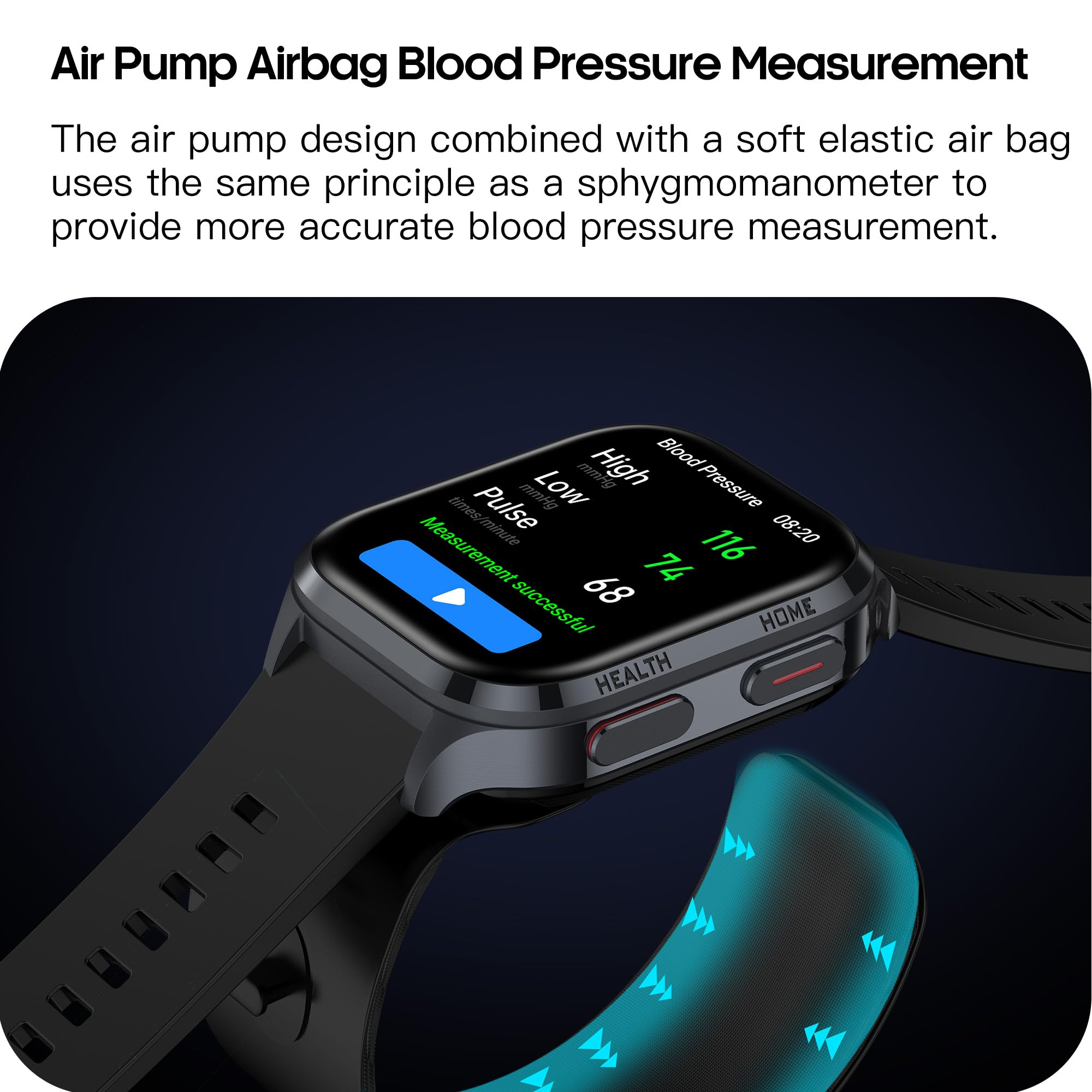【Air Pump Air Bag Blood Pressure Measurement】Continuous monitoring of blood pressure through wearable devices has become a trend nowadays. This wrist blood pressure smartwatch features a soft pressurized airbag and a detachable strap design, making it comfortable to wear. Equipped with a high-end pressure sensor, it delivers more accurate measurements and includes a thoughtful voice broadcast function for added convenience.