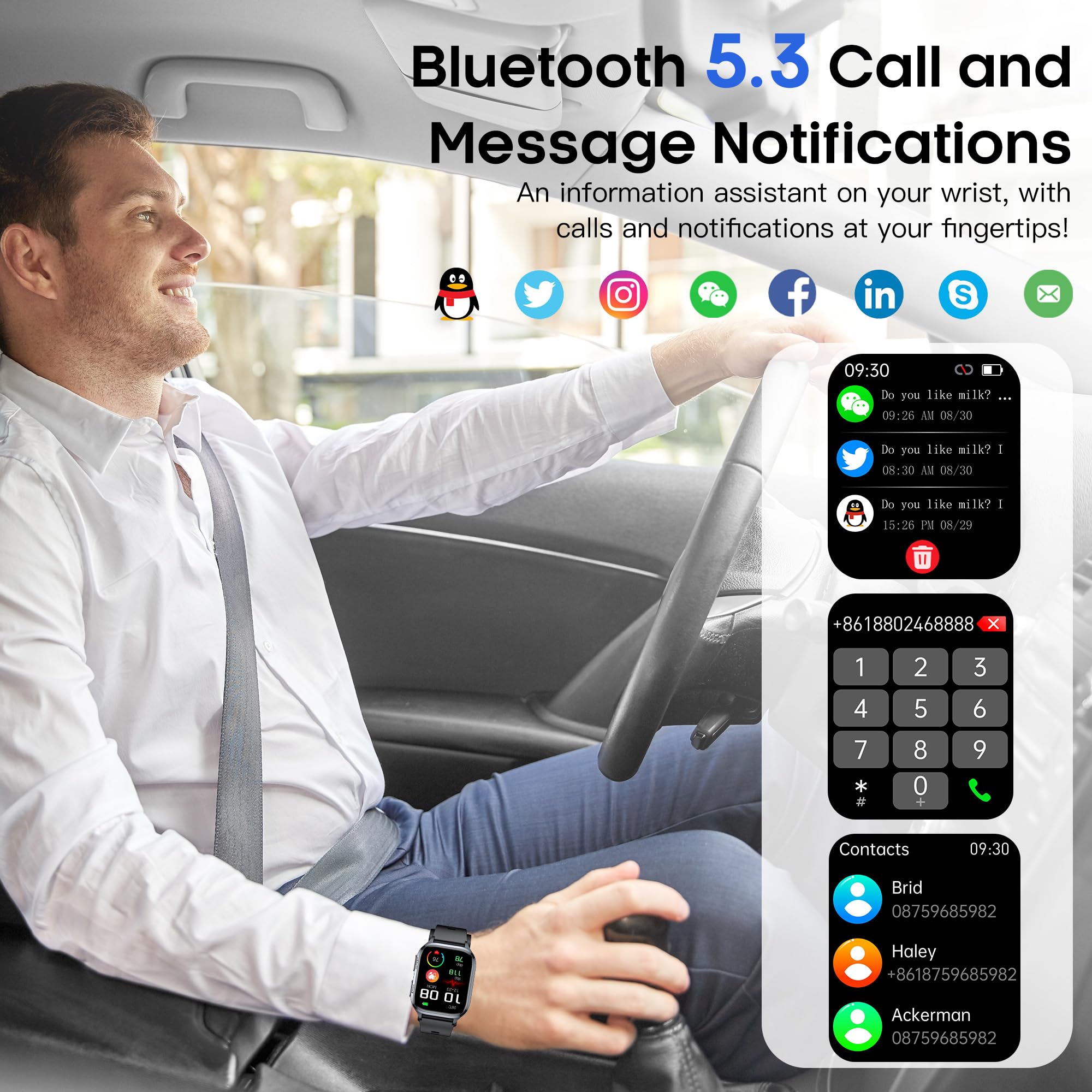 【Bluetooth Call and Message Notification】This smartwatch for men and women has a built-in high-quality speaker. After connecting to the APP via Bluetooth, you can easily make and receive calls, check call logs and contacts. You can receive text messages, emails and app notifications directly on your wrist, and you can adjust the vibration intensity to ensure that you will not miss important information and enjoy a convenient communication experience.