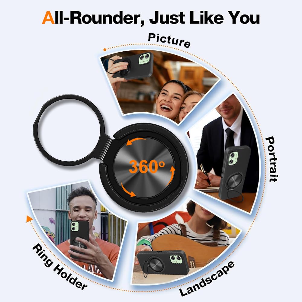 👍【360° Rotatable Ring & Flexible KickStand】360° +180° Rotatable Magnetic Stand breaks the rules with stand takes convenience to the next level! There is no better choice if you want to prop your phone up vertically or horizontally. Great for watching videos, etc.
