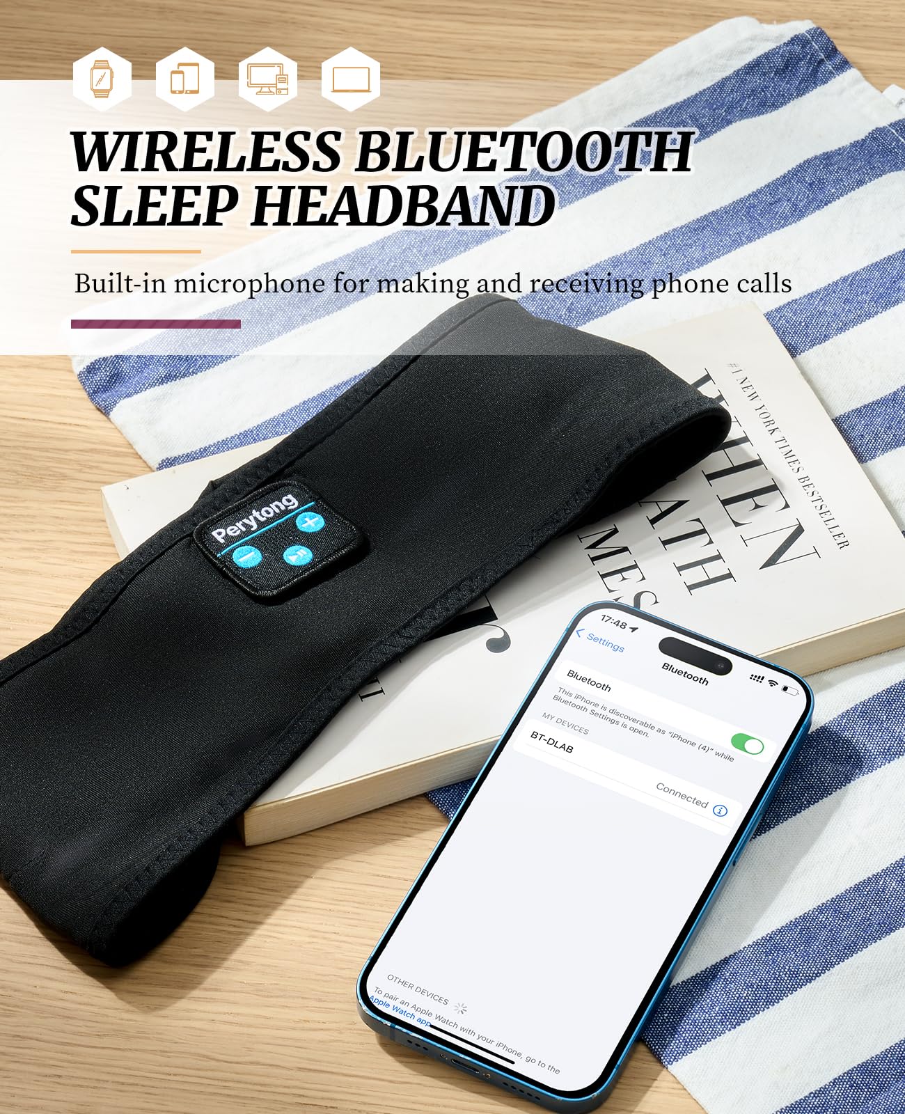 Sleep Headphones & Sleep Mask & Bluetooth Headband 3 in 1: Perytong Bluetooth sleep headphones feature a headband design with wireless headset inside, allow you to enjoy hands free music, and protect you from being disturbed by your mess hair and sweat. Wireless sleep headphones is perfect suitable for nap, air travel, gym, workout, running, yoga as well as sleeping. Bluetooth headband headphones is the unique gift for family or friends with a exquisite packaging