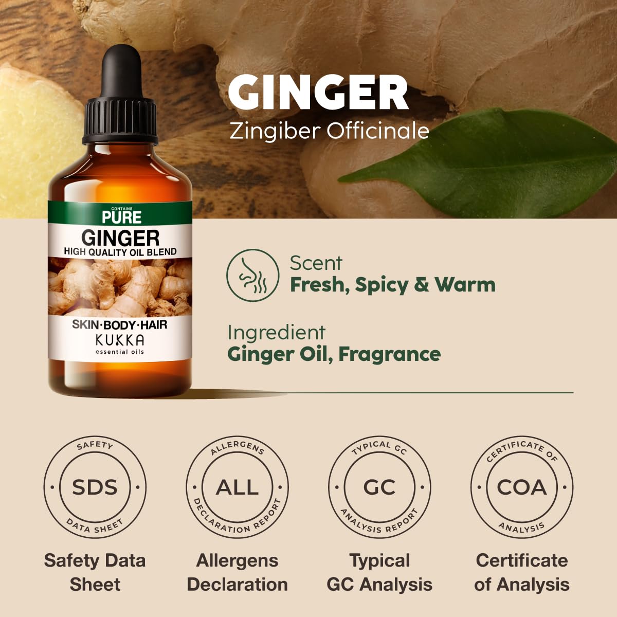 Nourish and moisturize your skin. Enjoy smoother, hydrated skin with Ginger Oil for skin. Add 2-3 drops of Ginger Essential Oil to your lotions or facial serums to enjoy its moisturizing benefits.