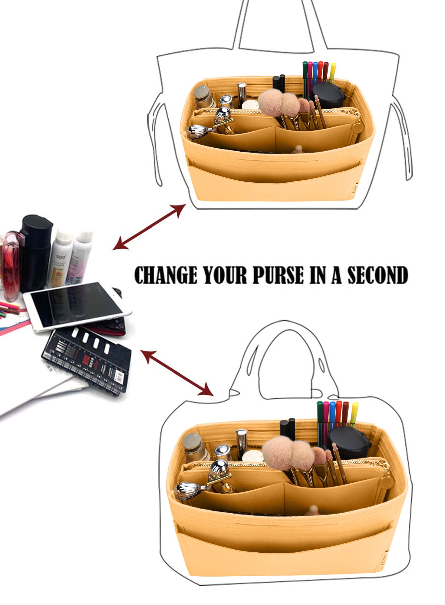 BETTER PROTECT:Felt Purse Organizer with High quality and New Materials are made of Sturdy ,Soft and pliable, Lightweight Felt fabric makes your purse a better protect.The Zipper of the organizer are made of Metal, Durable, Fashion and smoother sturdy and keeps your bag shape and shipshape.