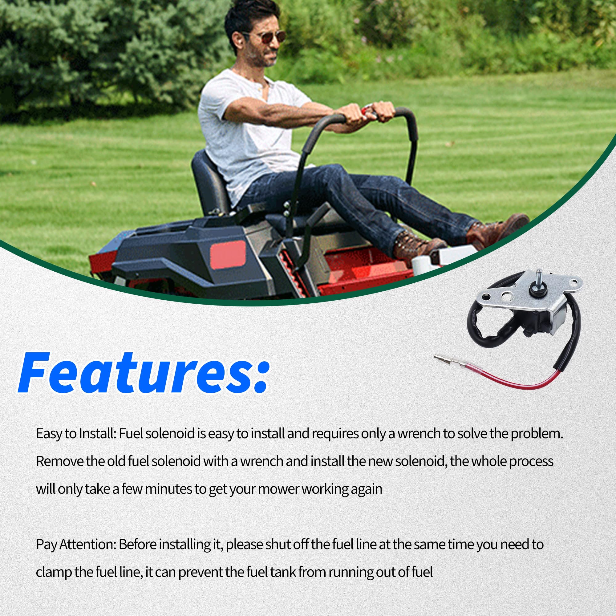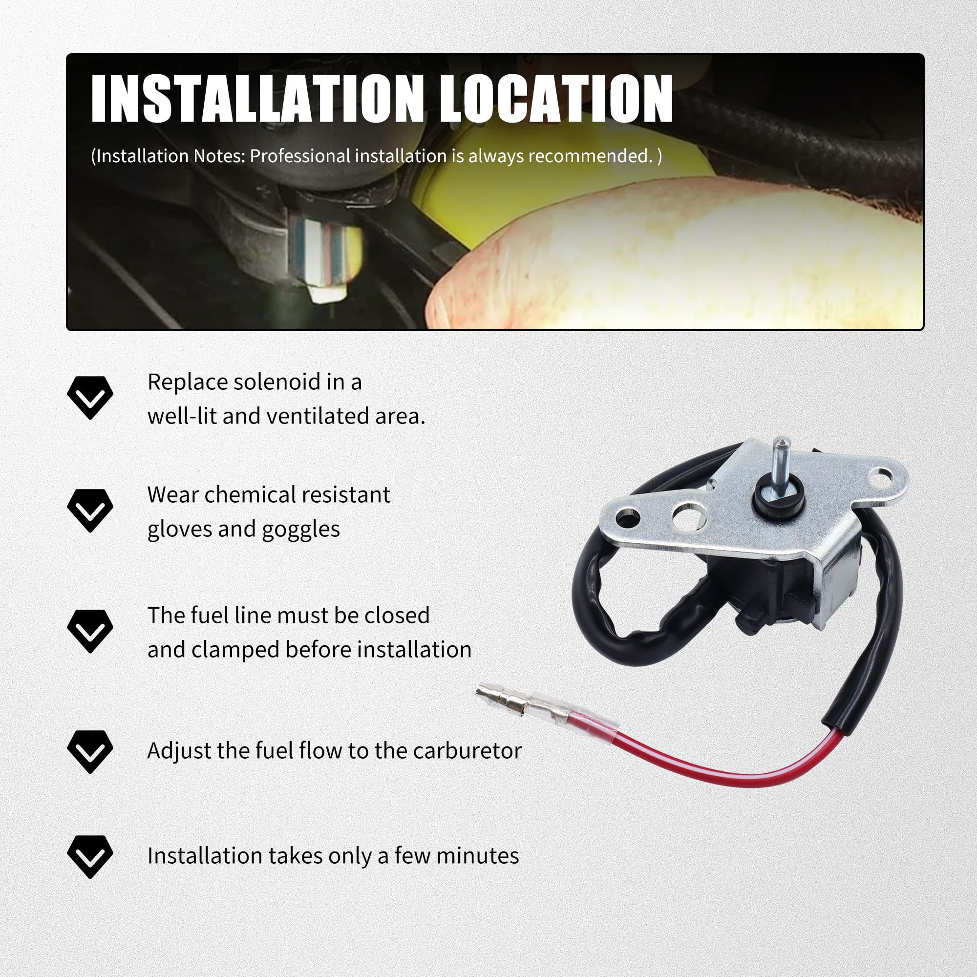 𝐄𝐚𝐬𝐲 𝐭𝐨 𝐈𝐧𝐬𝐭𝐚𝐥𝐥: This carburetor solenoid is very easy to install, Just clamp the fuel line to prevent gas from draining, unscrew the old solenoid, and screw in the new one with a wrench, so as to help you save a lot of money and time. You can find Youtube videos with good directions on how to change. (Installation Notes: Professional installation is always recommended. )