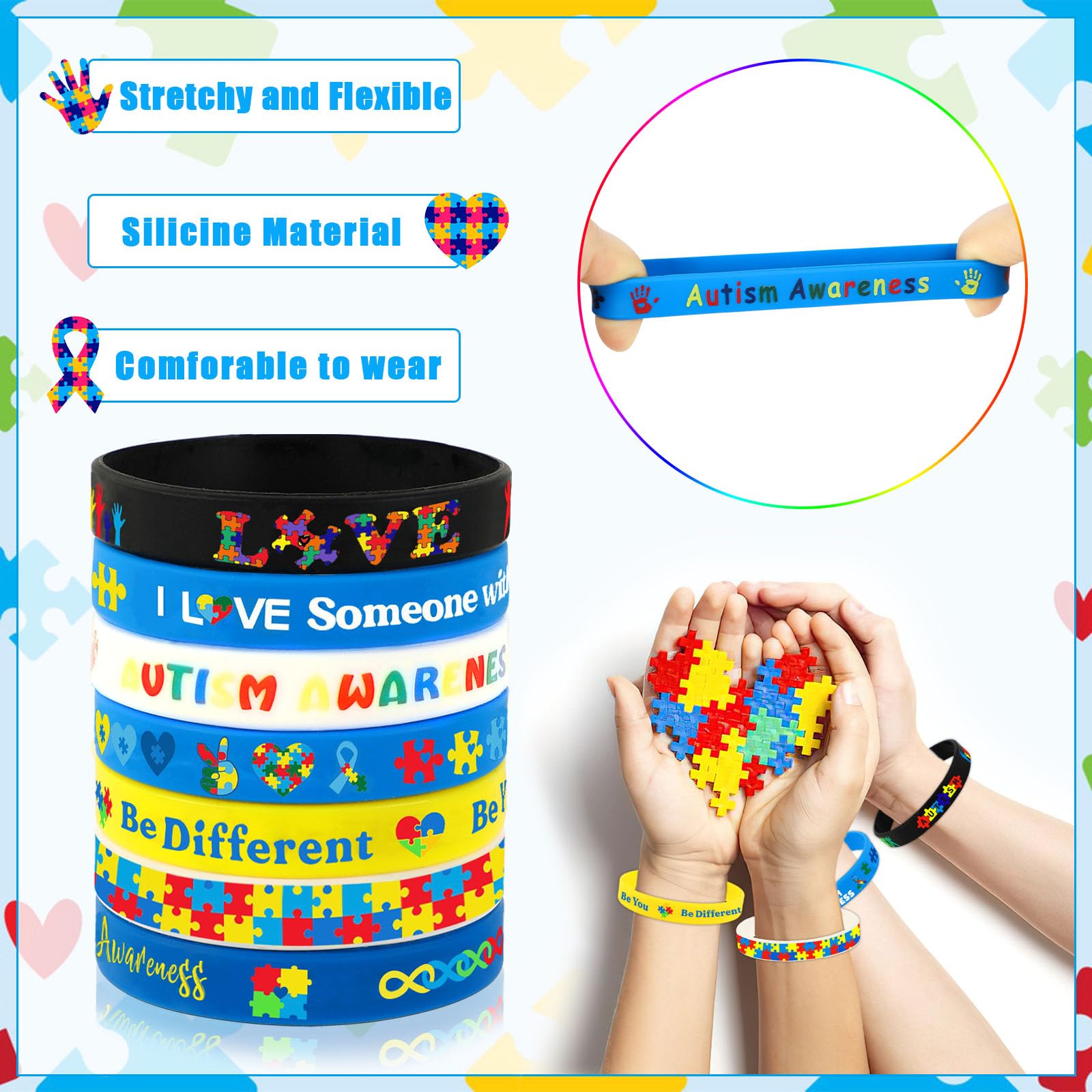 Package Contents: You will receive 42 Autism awareness silicone bracelets. With 7 different designs, 6pcs Autism bracelet of each, can meet your various needs and preferences, allowing you to choose the suitable style for yourself
