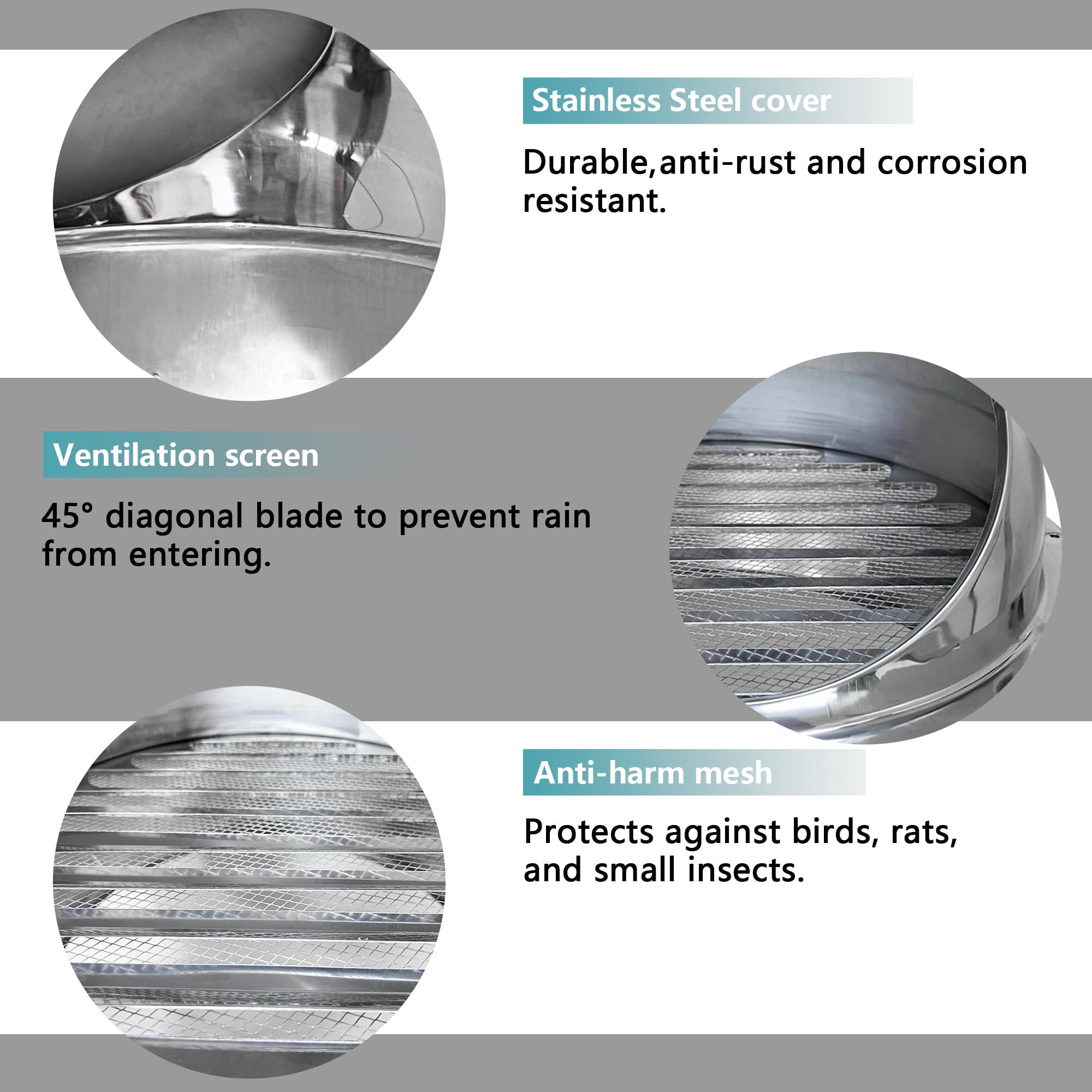 PREMIUM MATERIAL: Wall Air Vent Hood is made of high quality Stainless Steel with fine workmanship, durable, anti-rust and corrosion resistant.
