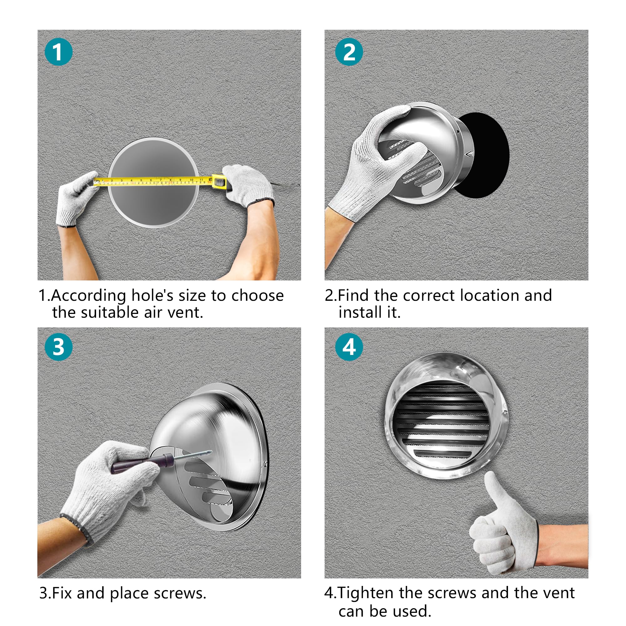 EASY INSTALLATION: Just insert the vent hose into the louvered vent cover and mount it on the wall.Please wear gloves during installation for proper safety measures.