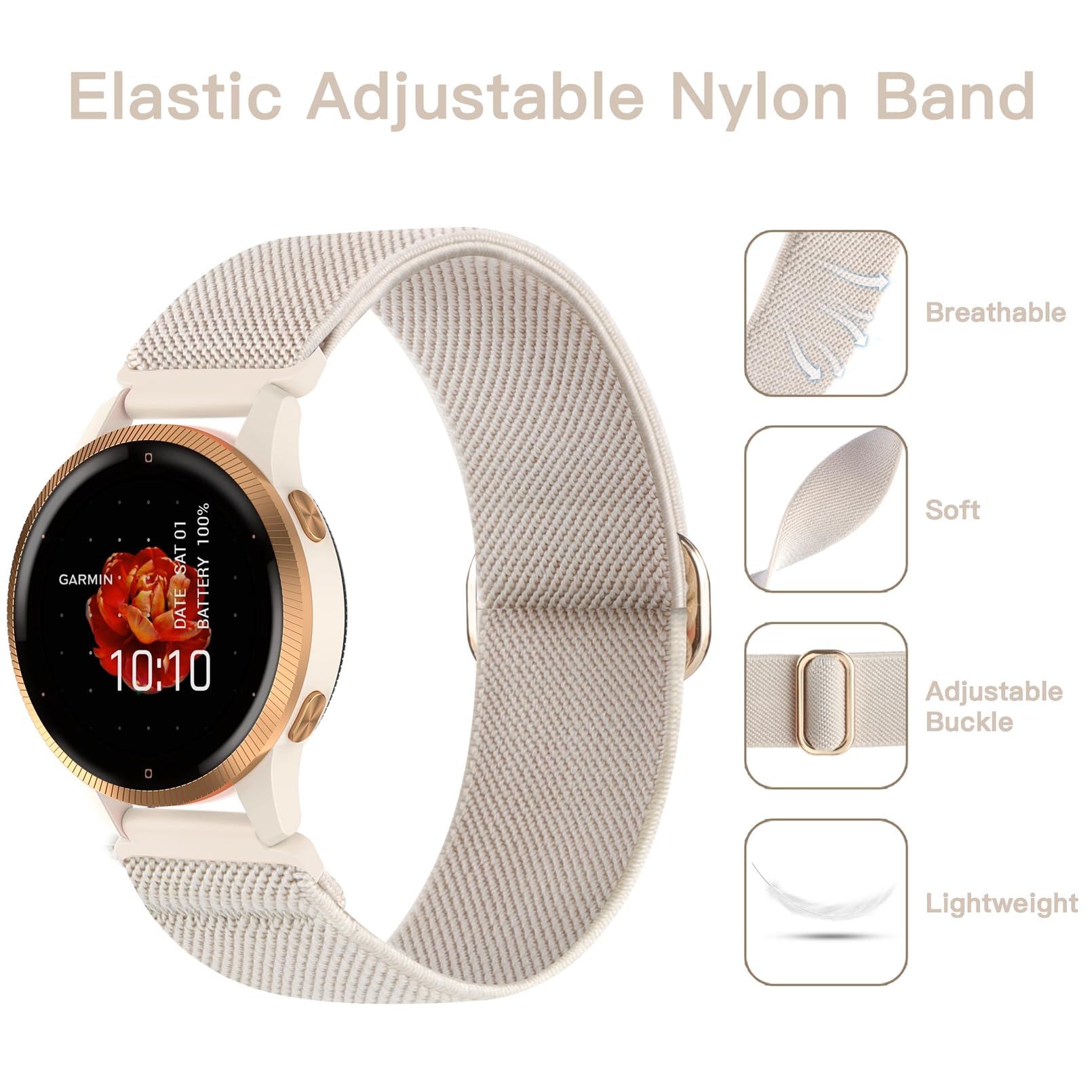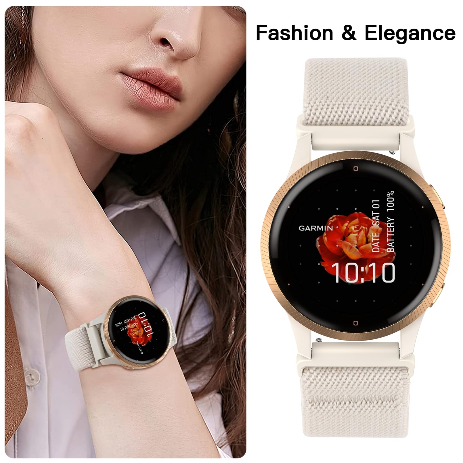 【Compatible Models】The 18mm stretchy fabric wristbands compatible with Garmin Venu 2S 40mm/Vivoactive 4S 40mm/Venu 3S 41mm/Venu 4 41mm/Vivomove 3S 39mm/Forerunner 255S/255S Music 41mm/Forerunner 265S 42mm/Forerunner 570 42mm.NOTE: Please check your watch model(back of the watch face) before buy it.Also determine the size of the watch band to be used by measuring the distance between 2 lugs of the watch face