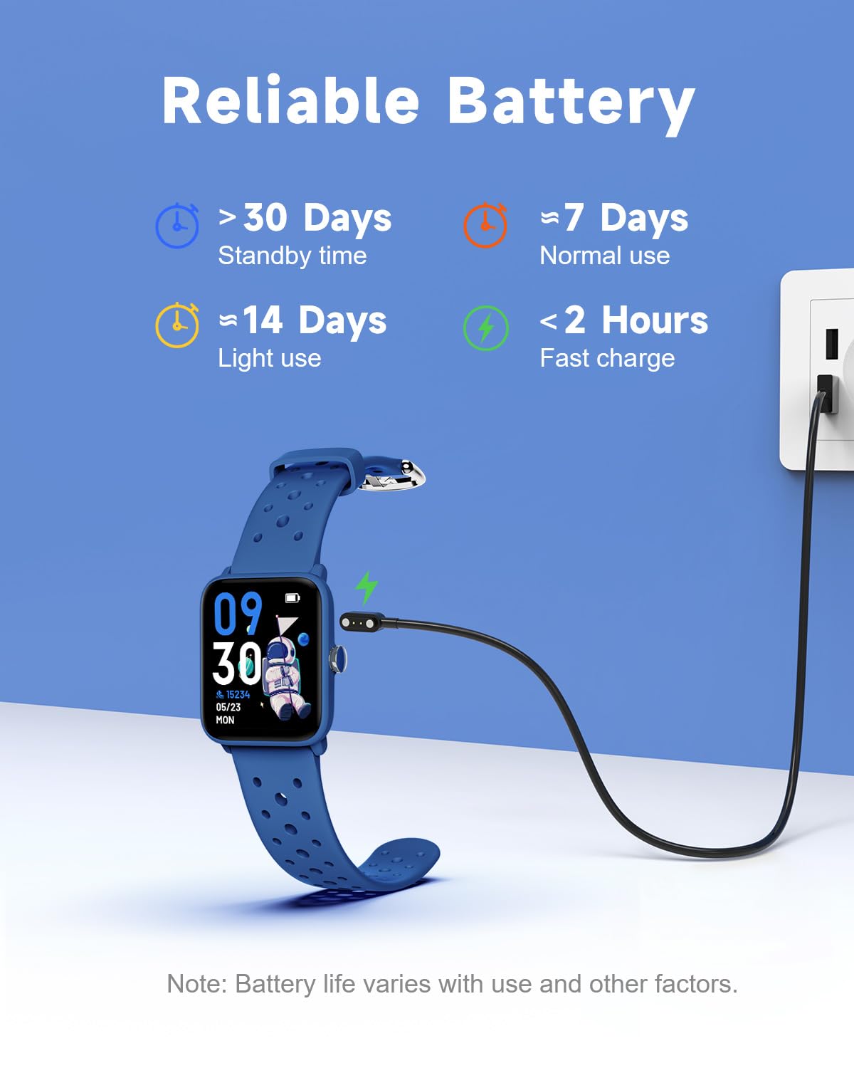 Customizable Watch Face&1.5" HD Touch Screen:Our kids smartwatch boasts a 1.5" HD touch screen and offers 50 exquisite cloud dials. Elevate personal style with custom dials using your kids' own photos and ignite their creativity!