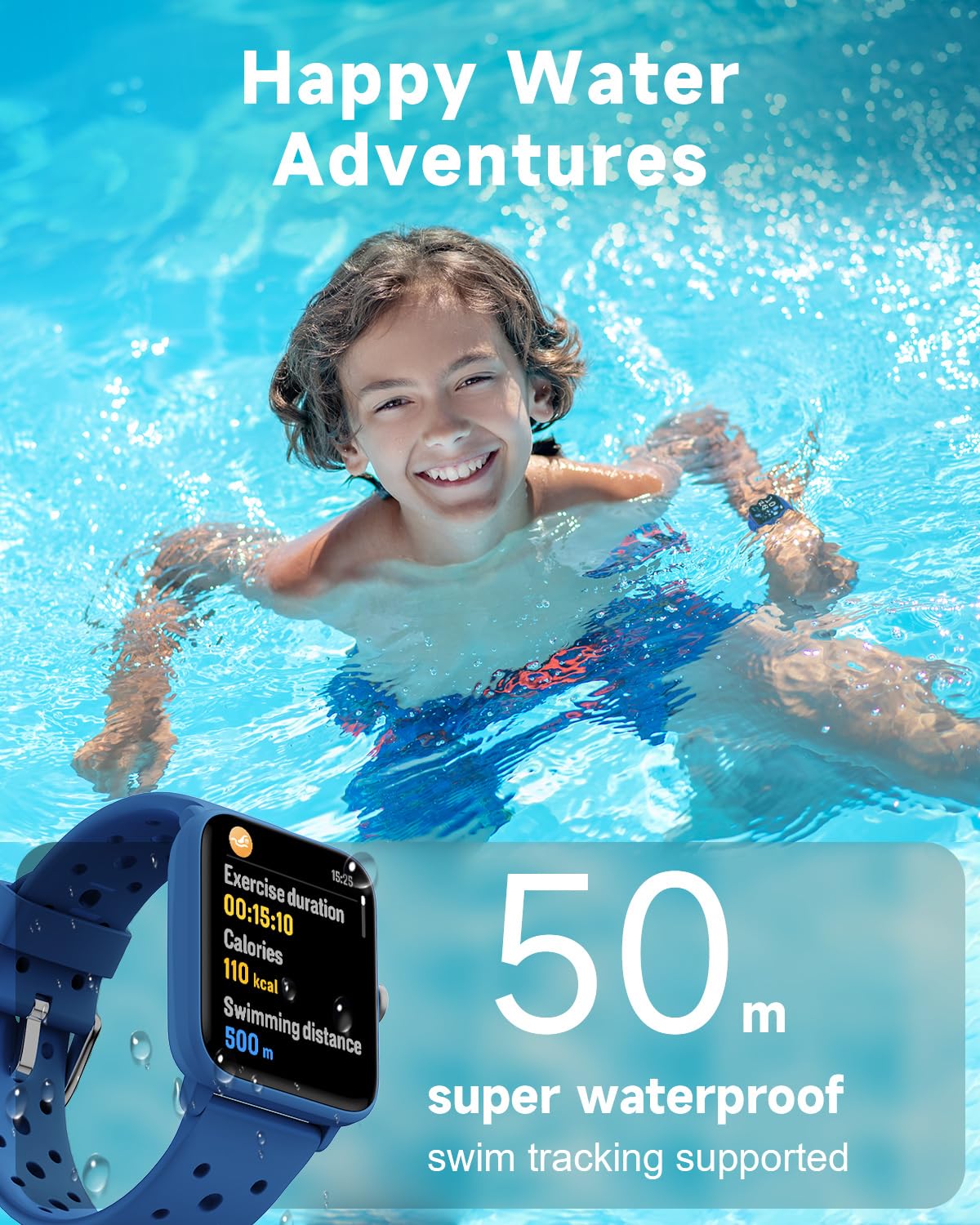 50M/5ATM Super Waterproof Design: Suitable for active water play up to 50 meters deep, making it perfect for pool time and water activities.