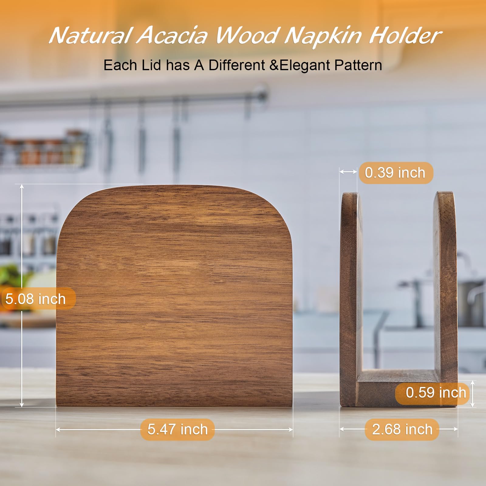 UNIQUE RUSTIC CHARM - Crafted from natural acacia wood, each napkin holder boasts unique colors and patterns, adding a charming rustic touch to your kitchen and enhancing your modern country decor.
