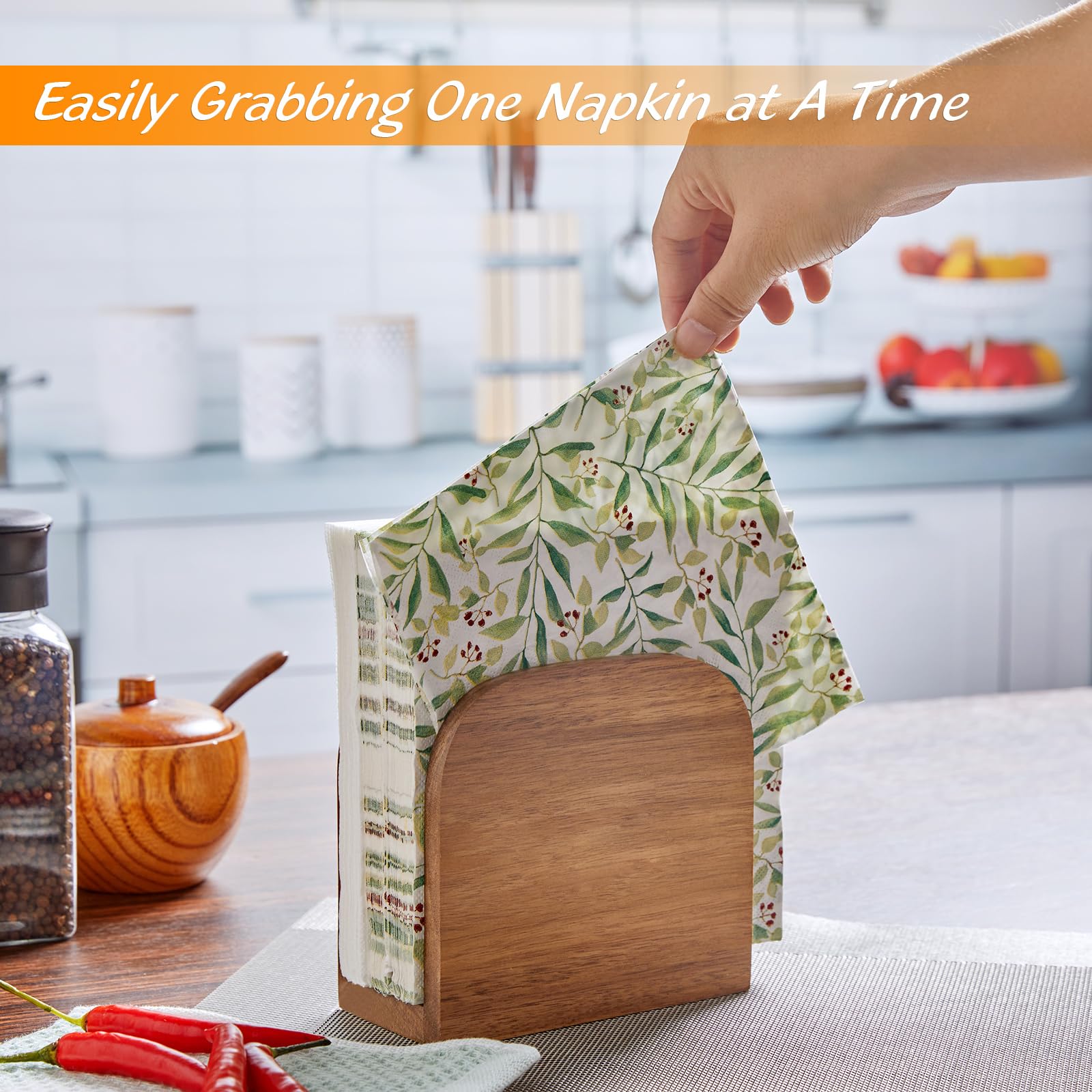 NAPKIN HOLDER FOR TABLE - Elevate your table's appearance with this stylish acacia napkin holder, suitable for kitchen tables, dining tables, or countertops. It accommodates up to 60+ casual or beverage napkins, adding both functionality and aesthetic appeal to your space.