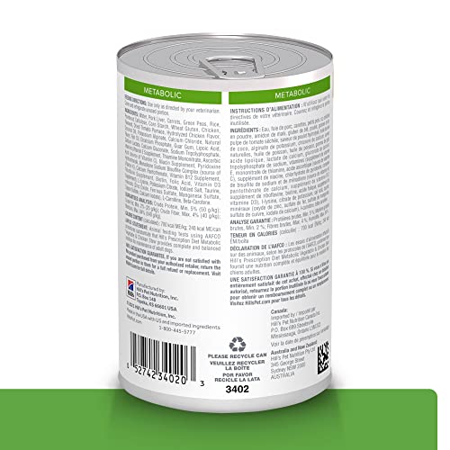 Prescription Diet Metabolic Weight + j/d Wet Dog Food is clinical nutrition proven to support your dog’s weight and joint health. This nutrition helps dogs naturally lose weight by activating their metabolism and improve mobility in as little as 21 days. This food is made in the USA with global ingredients you can trust, and was developed by Hill’s nutritionists and veterinarians. Please consult your veterinarian for further information on how Prescription Diet foods can help your dog continue to enjoy a happy and active life.