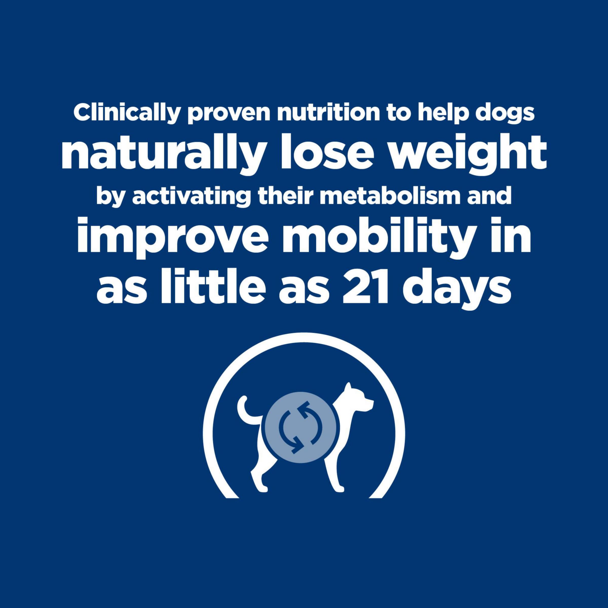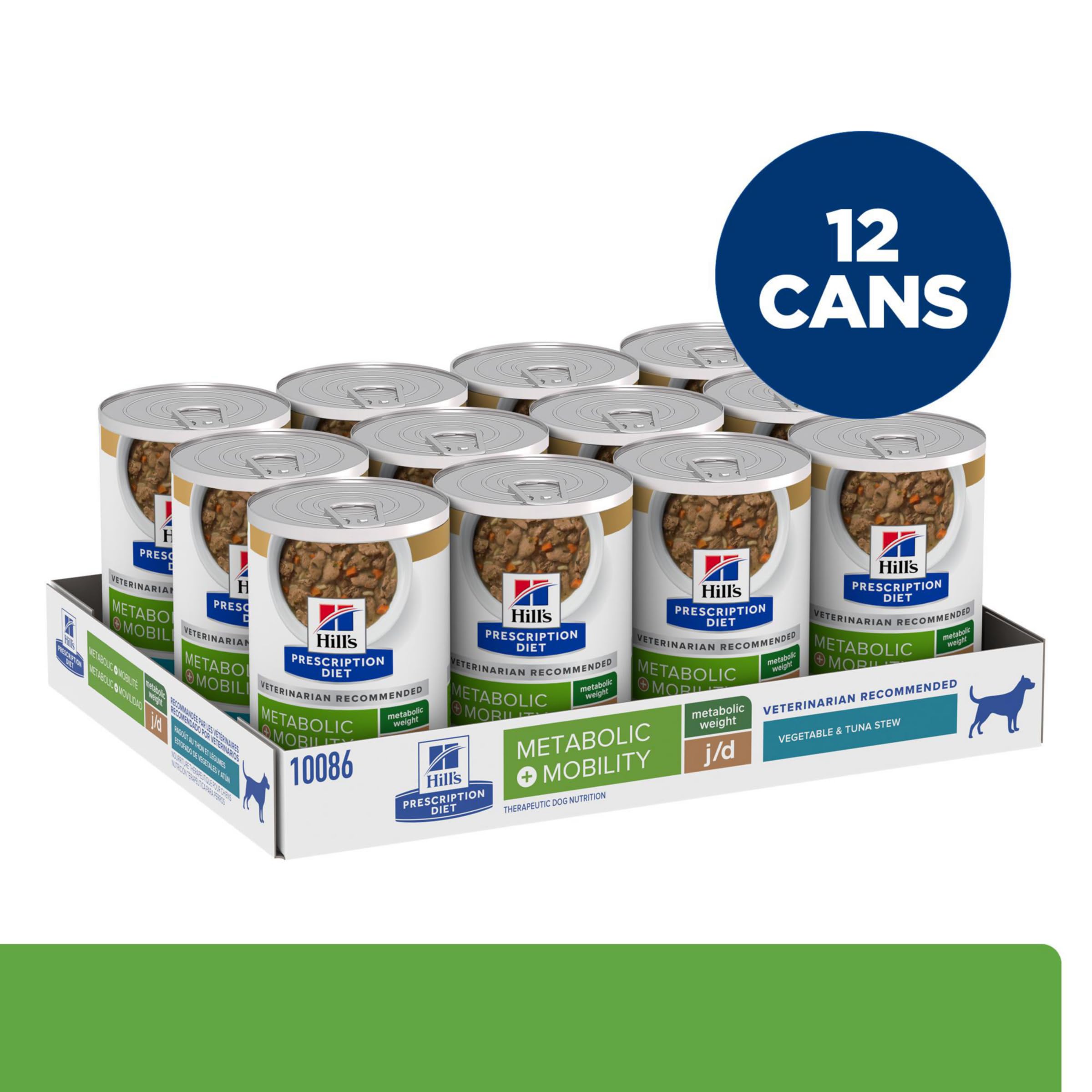 Hill's Prescription Diet Metabolic Weight + j/d, Weight + Mobility Canned Dog Food is specially formulated by Hill’s nutritionists and veterinarians to support your dog’s weight loss, weight maintenance and joint health