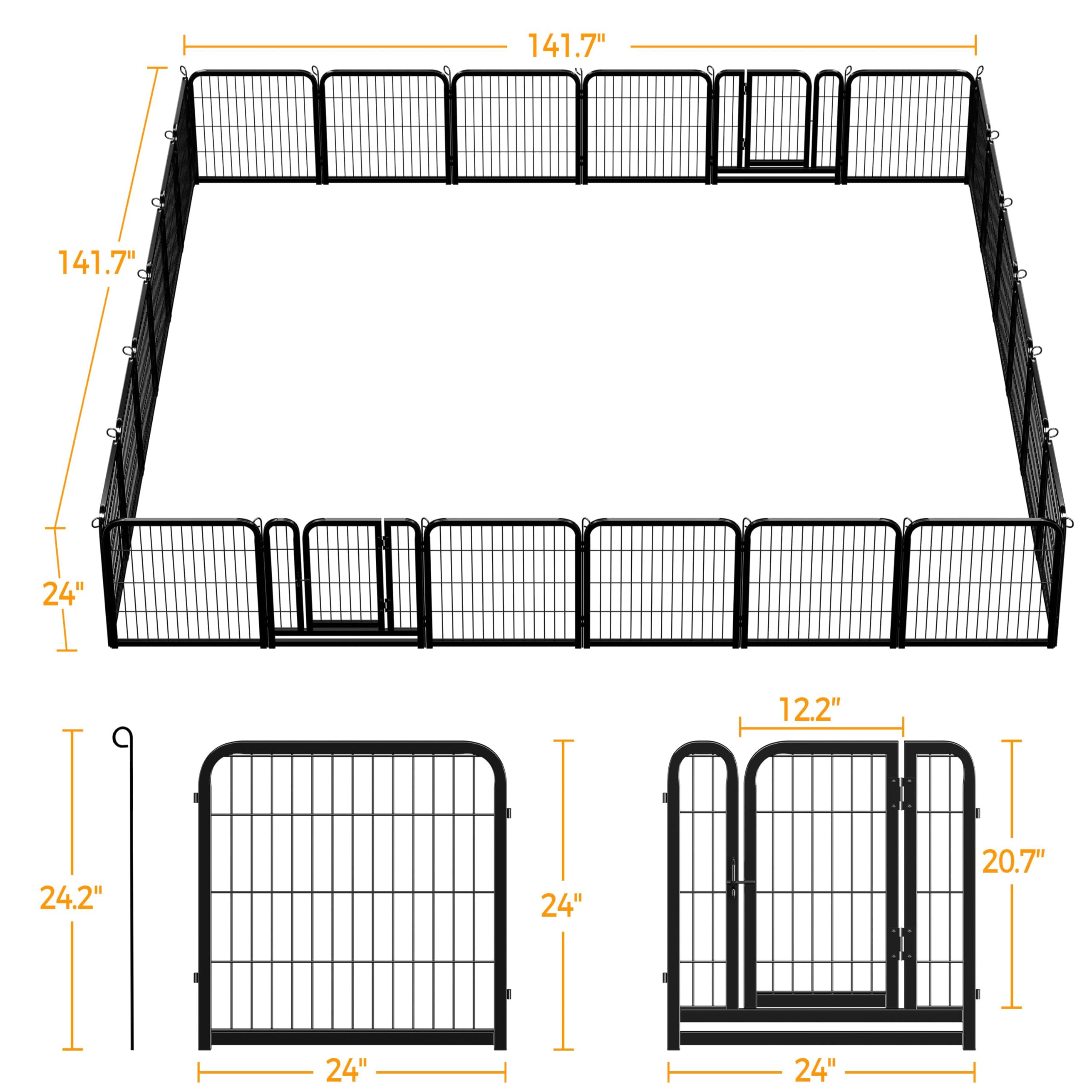 Reinforced Details for Sturdy Structure: Our 24-panel dog playpen panels feature reinforced details that ensure a robust structure. We use thicker wire diameter and denser wires that reduce wire gaps to create a safe and enclosed space where your pet can exercise and play