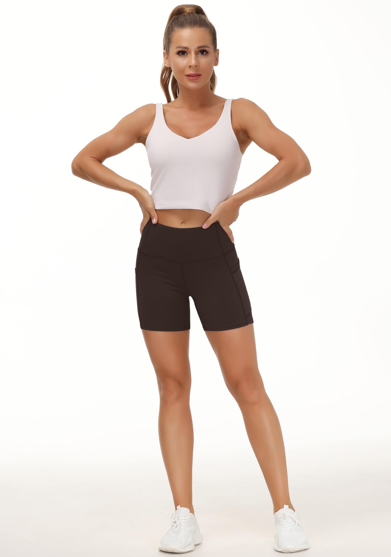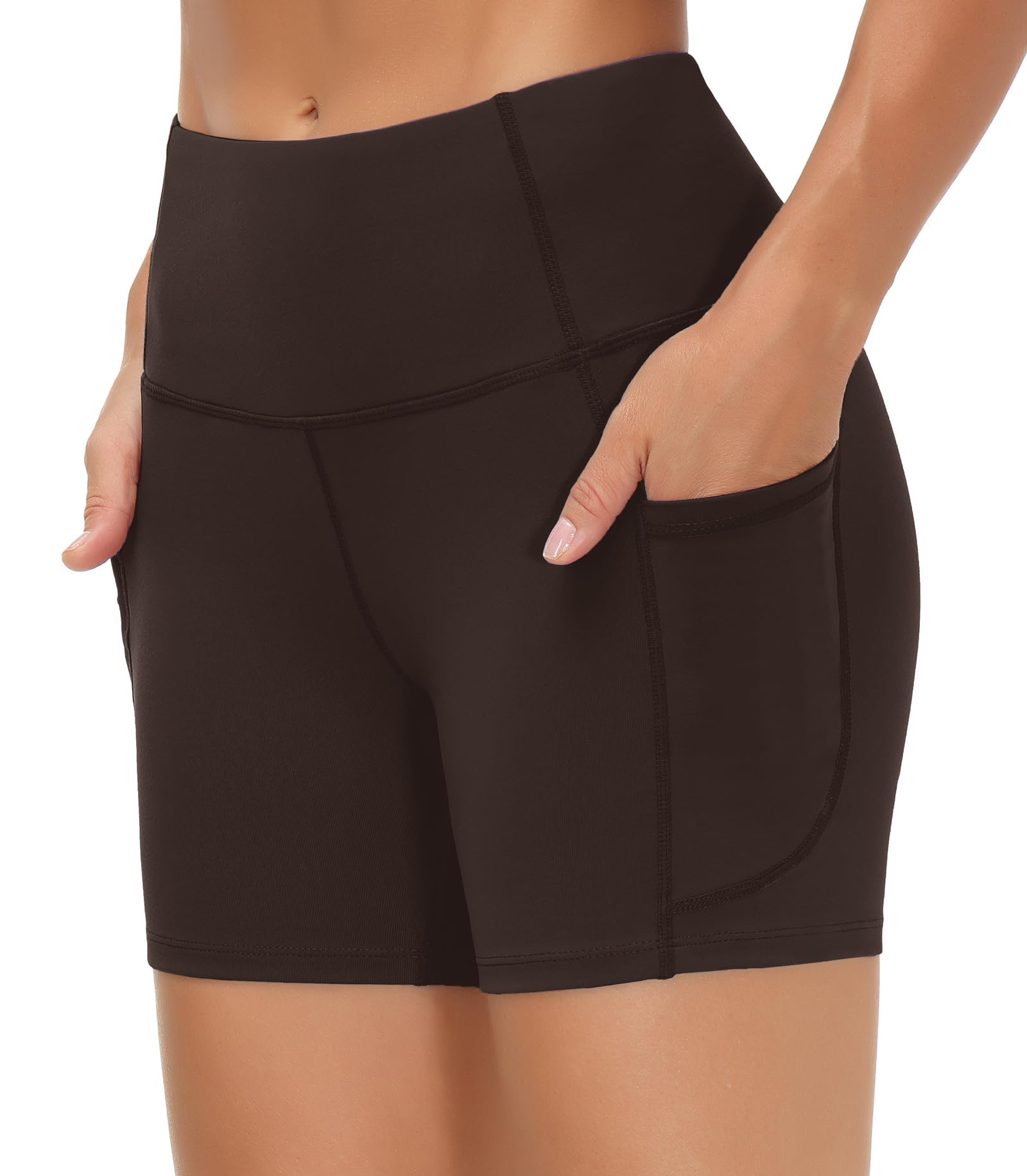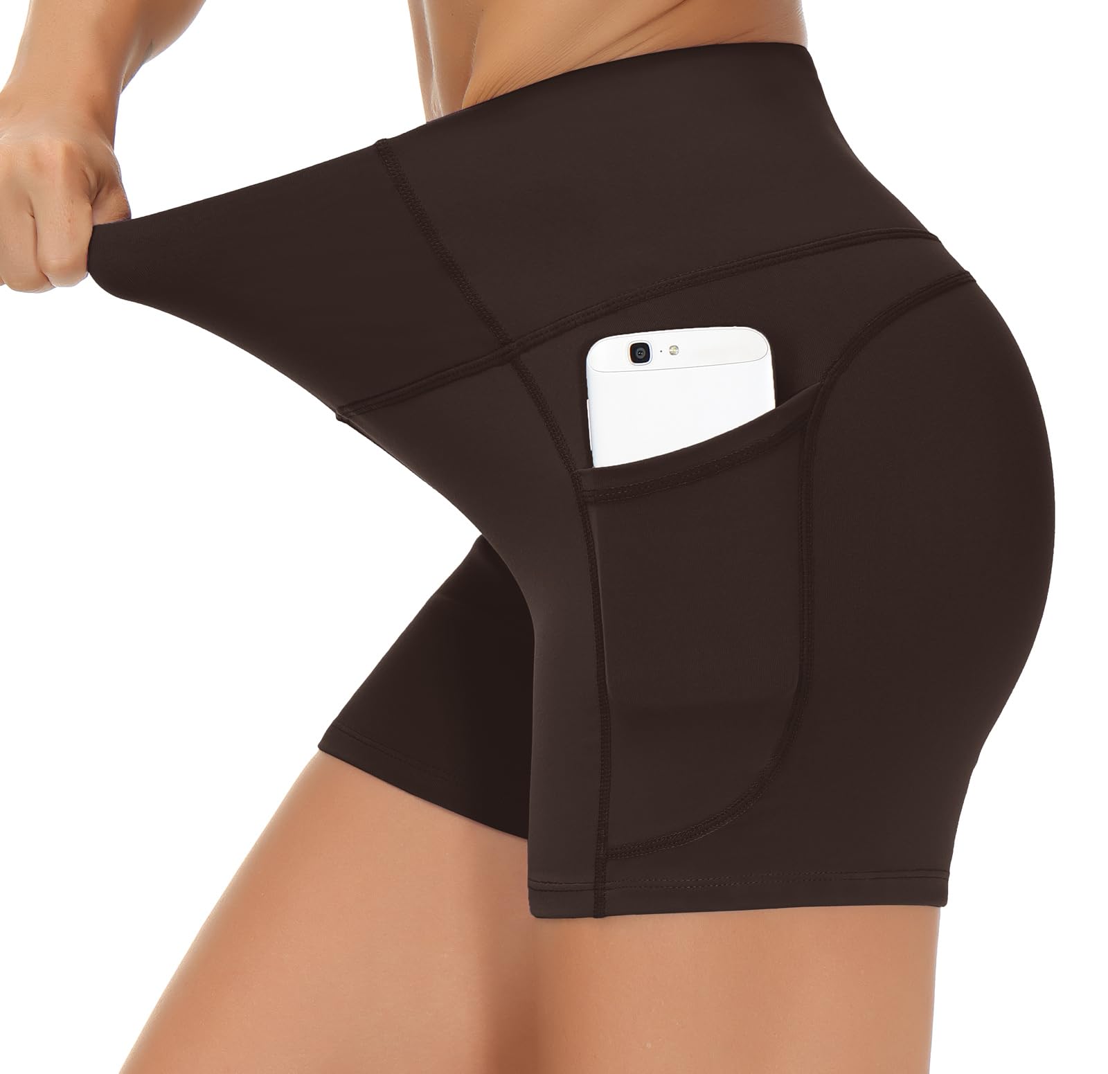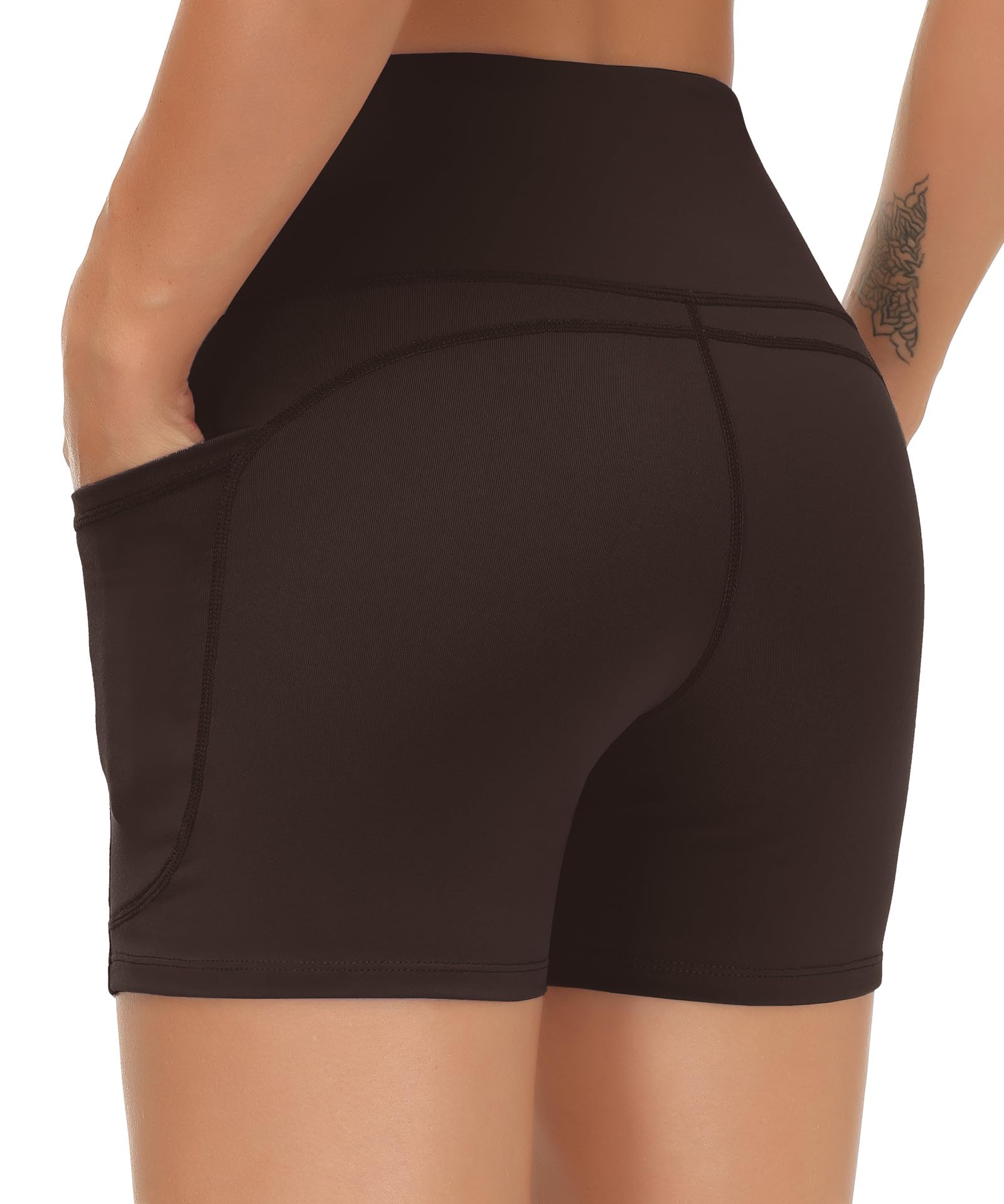 [Keep Perfect Shape] - High-waisted style with tummy control design. Wide waistband contours body curves and streamlines shape help to promote yoga shorts both compression and support.