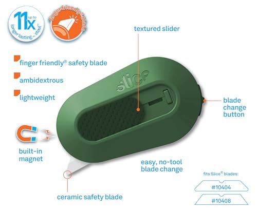 FOR HOME OR ON-THE-GO: Slice's lightweight mini utility knife is excellent to take on-the-go, but is also sufficient for home use. It is suitable for left and right hand users, has a reinforced handle for durability, and a built in magnet to keep it handy on the fridge.