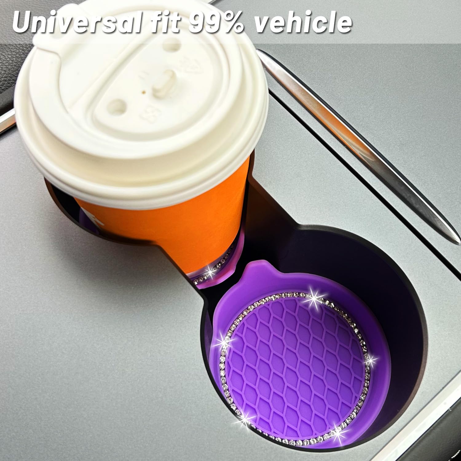 NBTEPEM 4pcs Bling Car Cup Holder Coaster, 2.75 inch Anti-Slip Shockproof Universal Fashion Car Coasters Insert Bling Crystal Rhinestone Automotive Interior Accessories for Women (4 pcs, Purple)