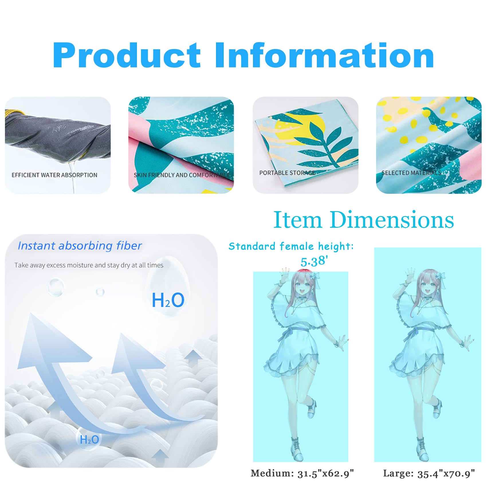 Beach towels for adults is made of super soft microfiber material(short velvet fabric), which feels comfortable, does not shed easily, and has excellent water absorption and quick-drying functions, allowing you to enjoy coolness and comfort at the beach. Size: 31.5*62.9 Inches; single-sided printing.
