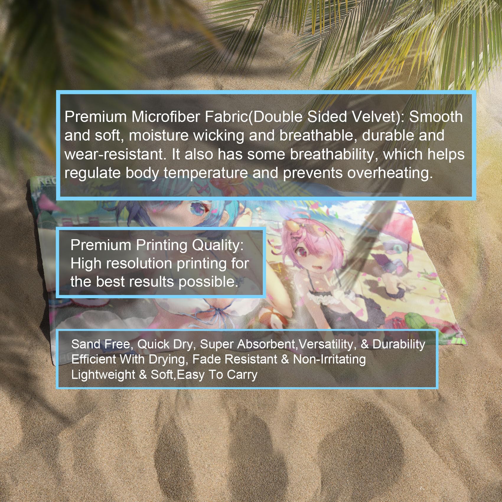 Each anime waifu beach towel is unique, showcasing a specific character from an anime series. This personalized touch makes the towel a great way to express your love for a specific anime character or franchise.