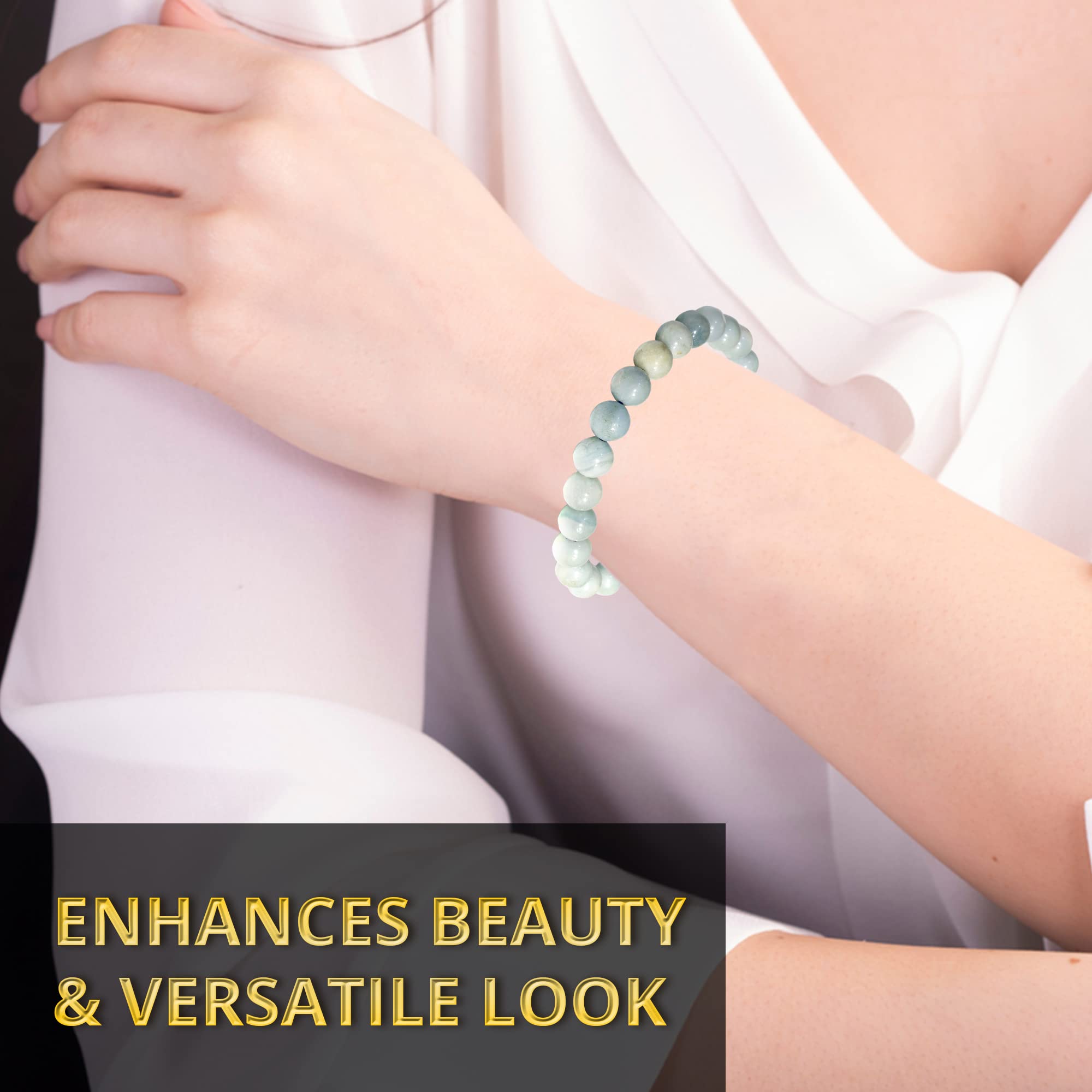 Superb Craftsmanship: The Amazonite beaded bracelet for women and men are made with high-quality, real gemstones, carefully selected, prepared, and polished to perfectly 8mm round beads that are safe for the skin and resistant.