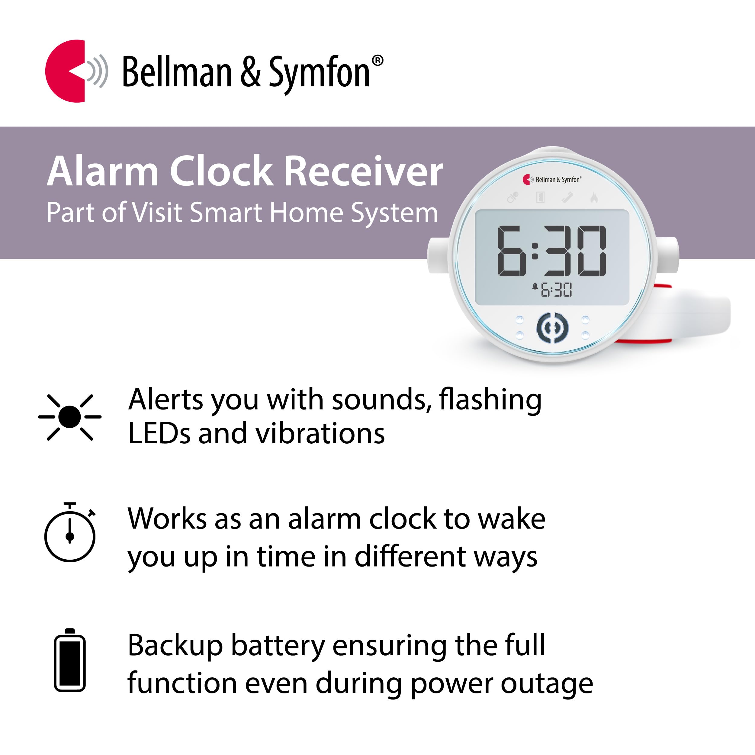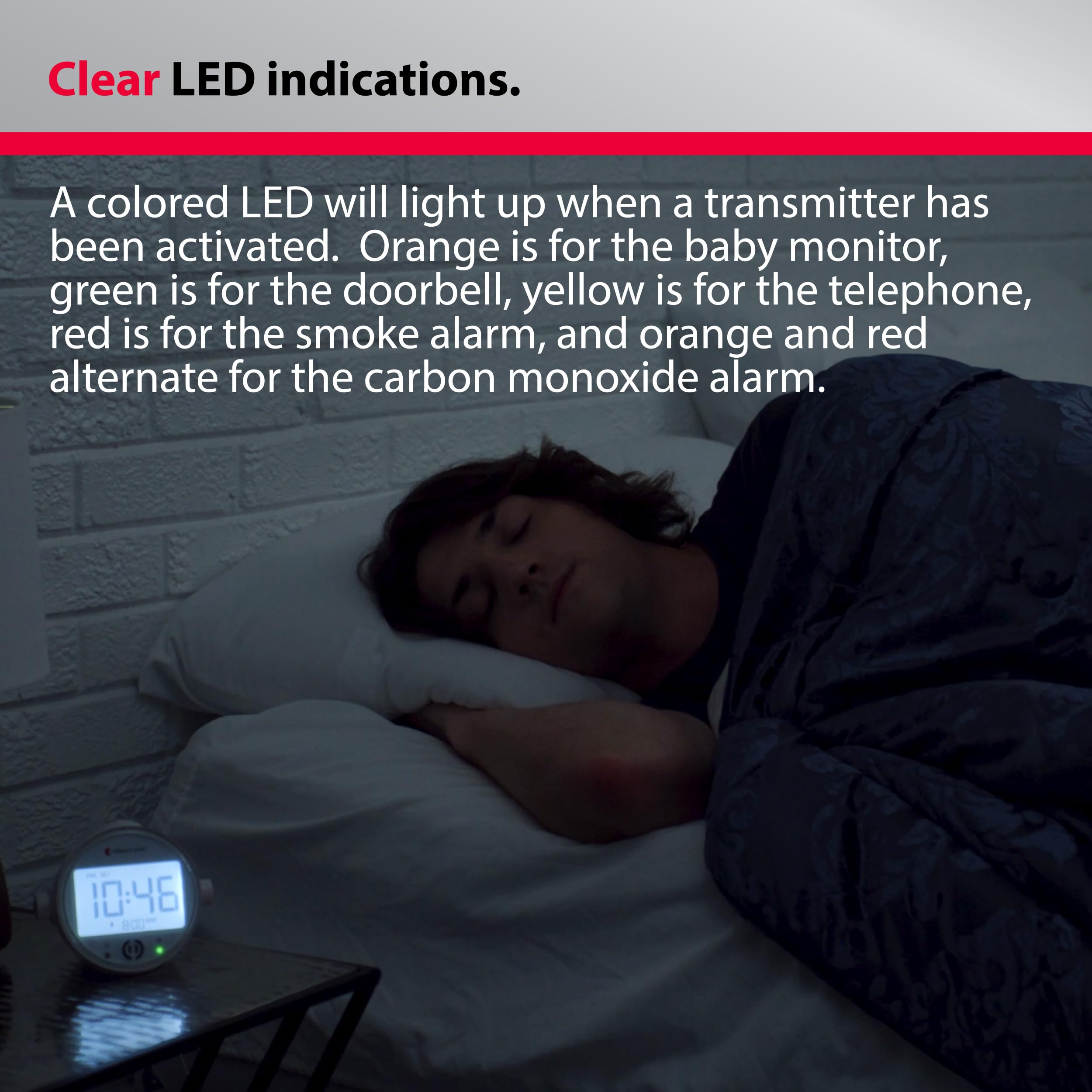 𝐅𝐋𝐀𝐒𝐇 𝐀𝐋𝐄𝐑𝐓𝐒: This flashing light alarm clock features four ultra-bright LEDs that provide visual alerts for phone calls, doorbells, and fire alarms. It's perfect for those with hearing loss and fits seamlessly into any Visit Receiver or smart alert system setup.