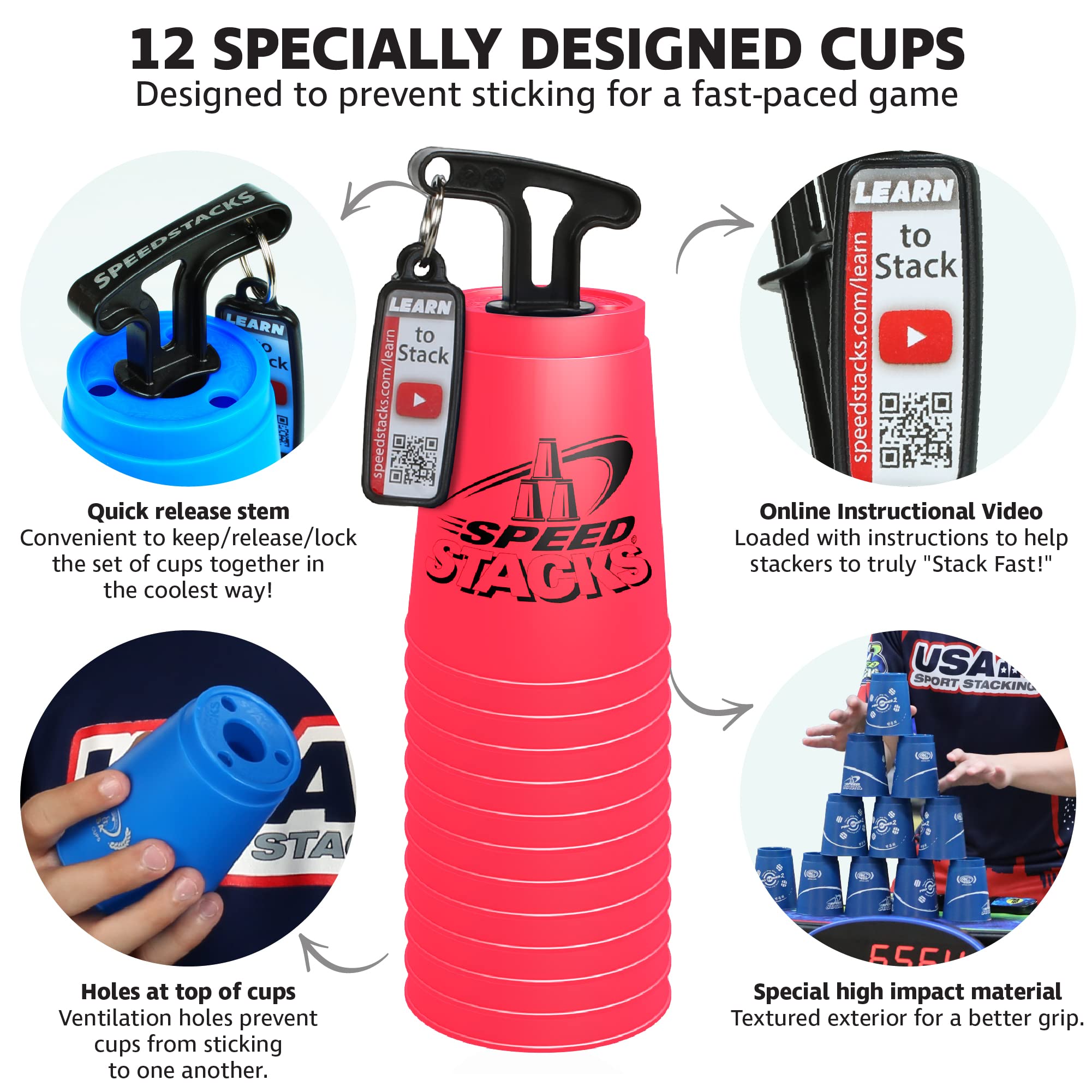STACK FAST: 12 cups, made with high-quality materials and specially designed to minimize friction between cups while sport stacking and reduce stacking time.
