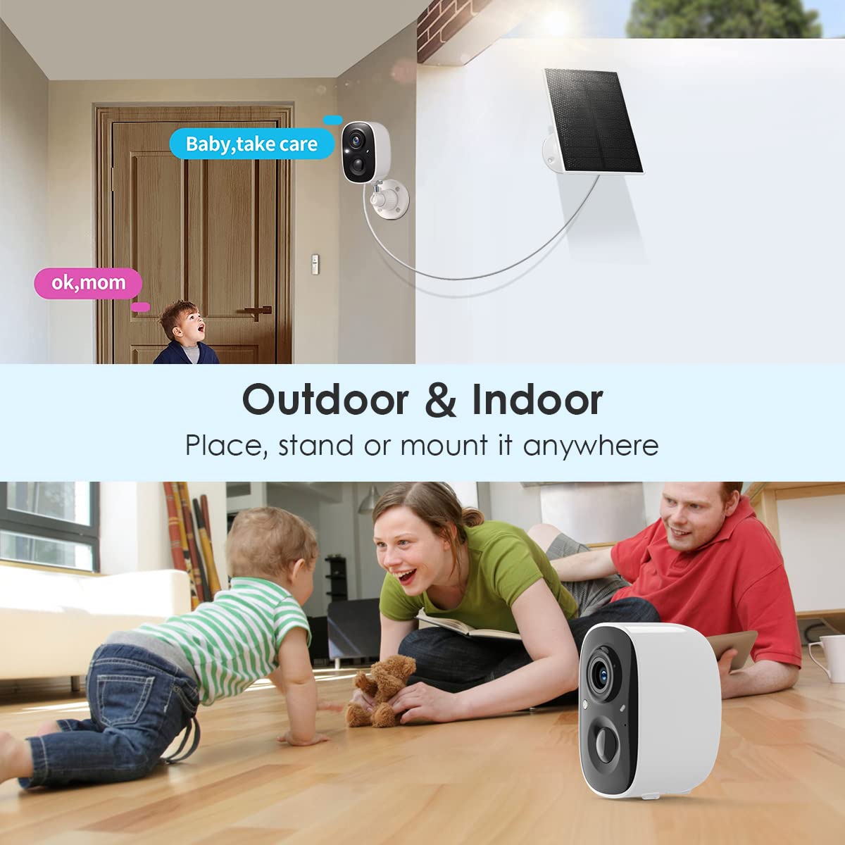 [Wire-Free & Non-Stop Solar Powered Outdoor Camera] This solar camera with true cordless design. No wire, no hassle. Sustainable solar powered and battery powered, no need to recharge again and again. Environmentally friendly and sustainable energy, inject a steady stream of electricity into your camera. Don’t need to climb the ladder to recharge the battery periodically. (*Not work with 5GHz WiFi)