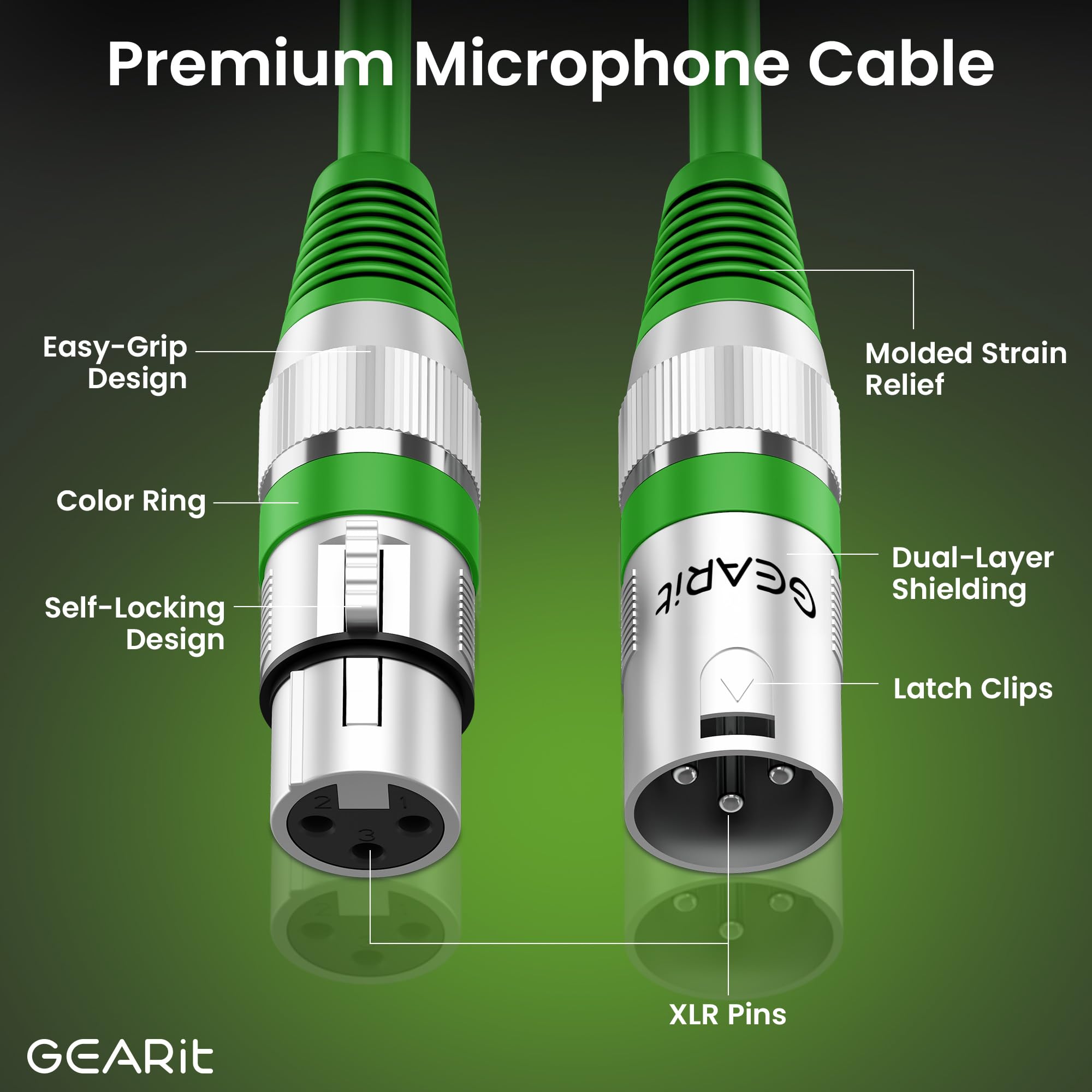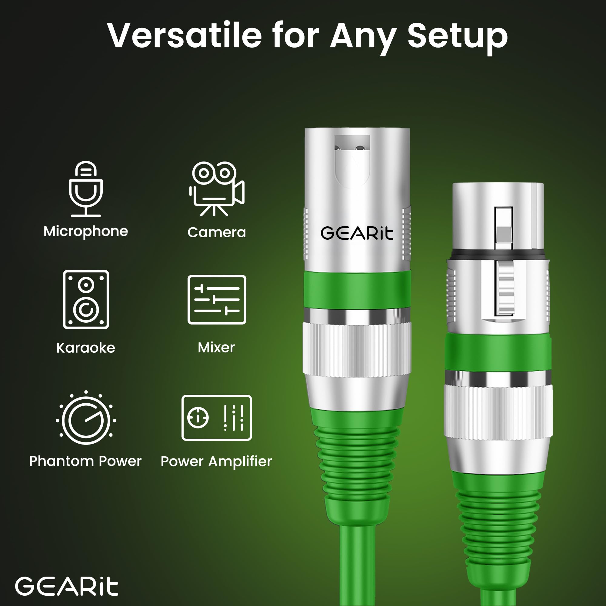 WIDE COMPATIBILITY - GEARit XLR Cords come in male to female XLR ends and have multi-pack options: 1-pack, 2-pack, 6-pack, 10-pack. Various XLR cord lengths such as: 1.5 ft, 100 ft (30m), 150 ft (45m), 200 ft (61m). Search for GEARit XLR Cables to find all our XLR mic cables.