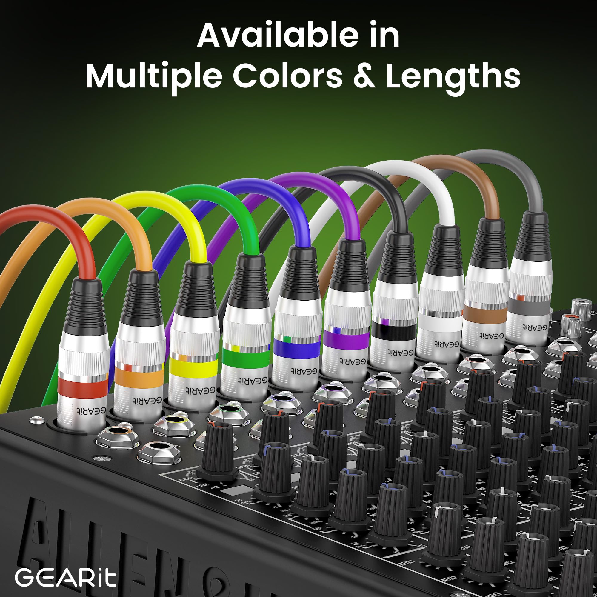 COLOR CODED XLR MICROPHONE CABLE - GEARit Colored XLR Cables come in 6 different colors (red, orange, yellow, green, blue, purple, black) for easier color matching and tracking for wireless mic cords, audio mixer or microphone cords.