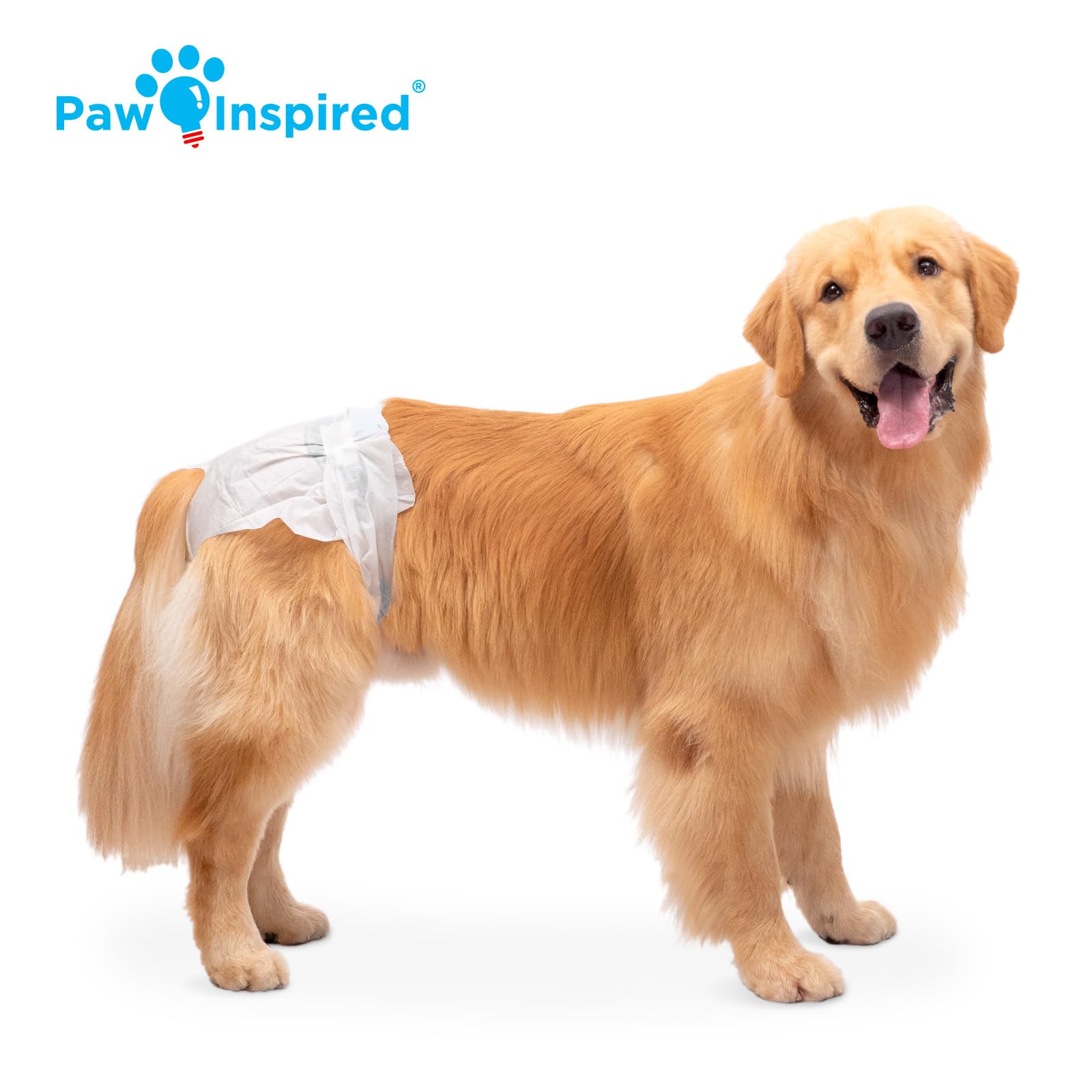 LEAK PROOF dog diapers, super absorbent core, comfortable, secure fit, breathable bottom layers, and gathered leak proof edges.